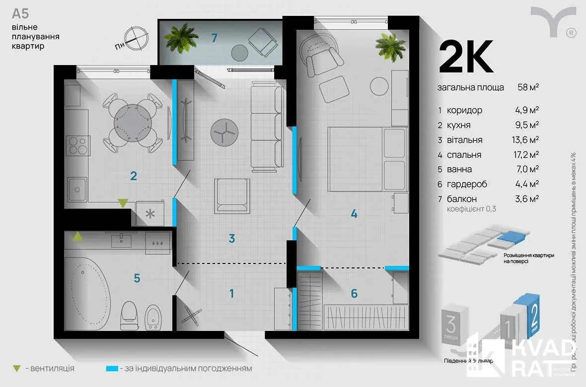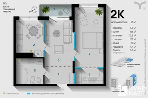 Двокімнатна з шикарним планування в ЖК SkyGarden