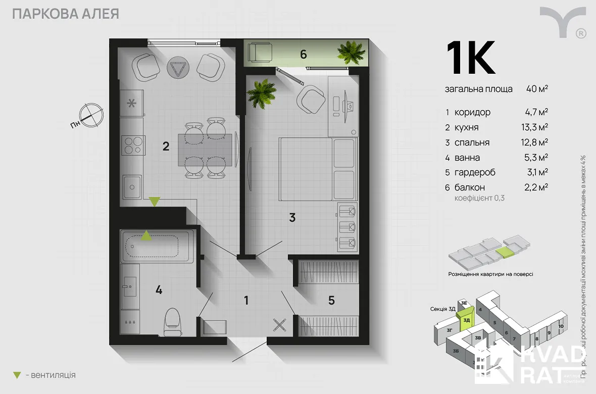 1 кім квартира 41 м2 на 6 поверсі в Sky Garden! Готова секція