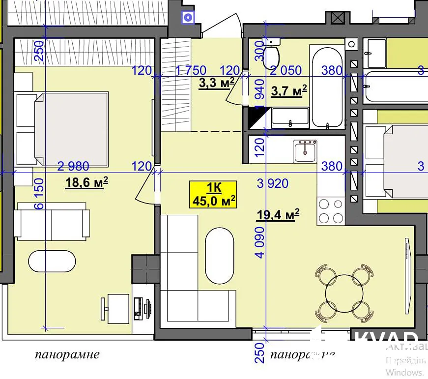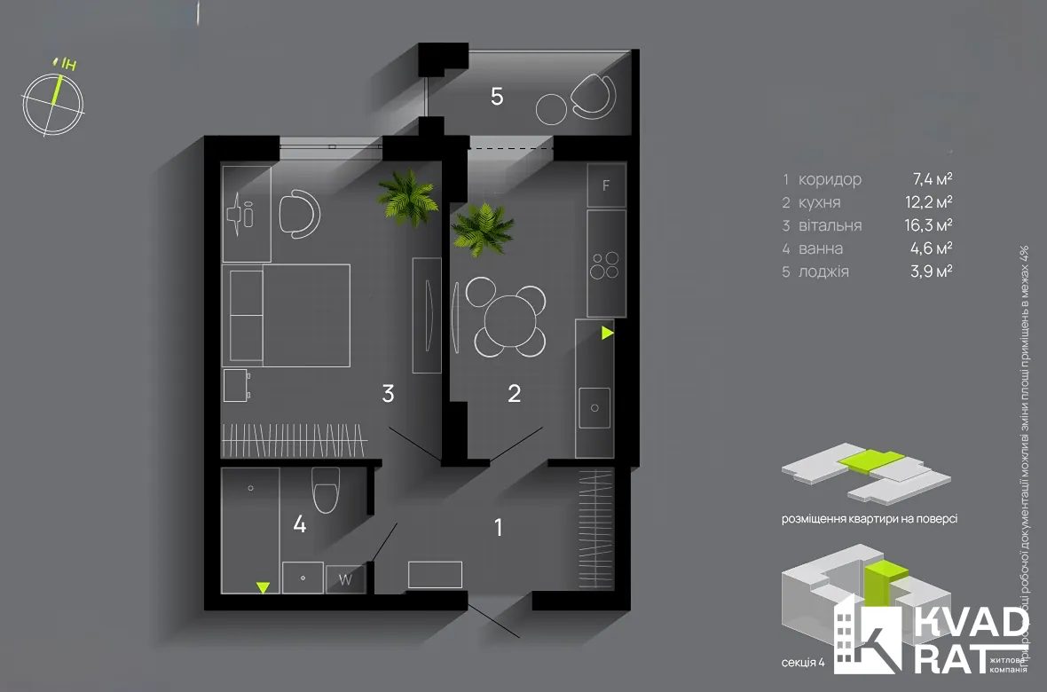 Дизайнерська півторачка біля Міського озера, 4 поверх