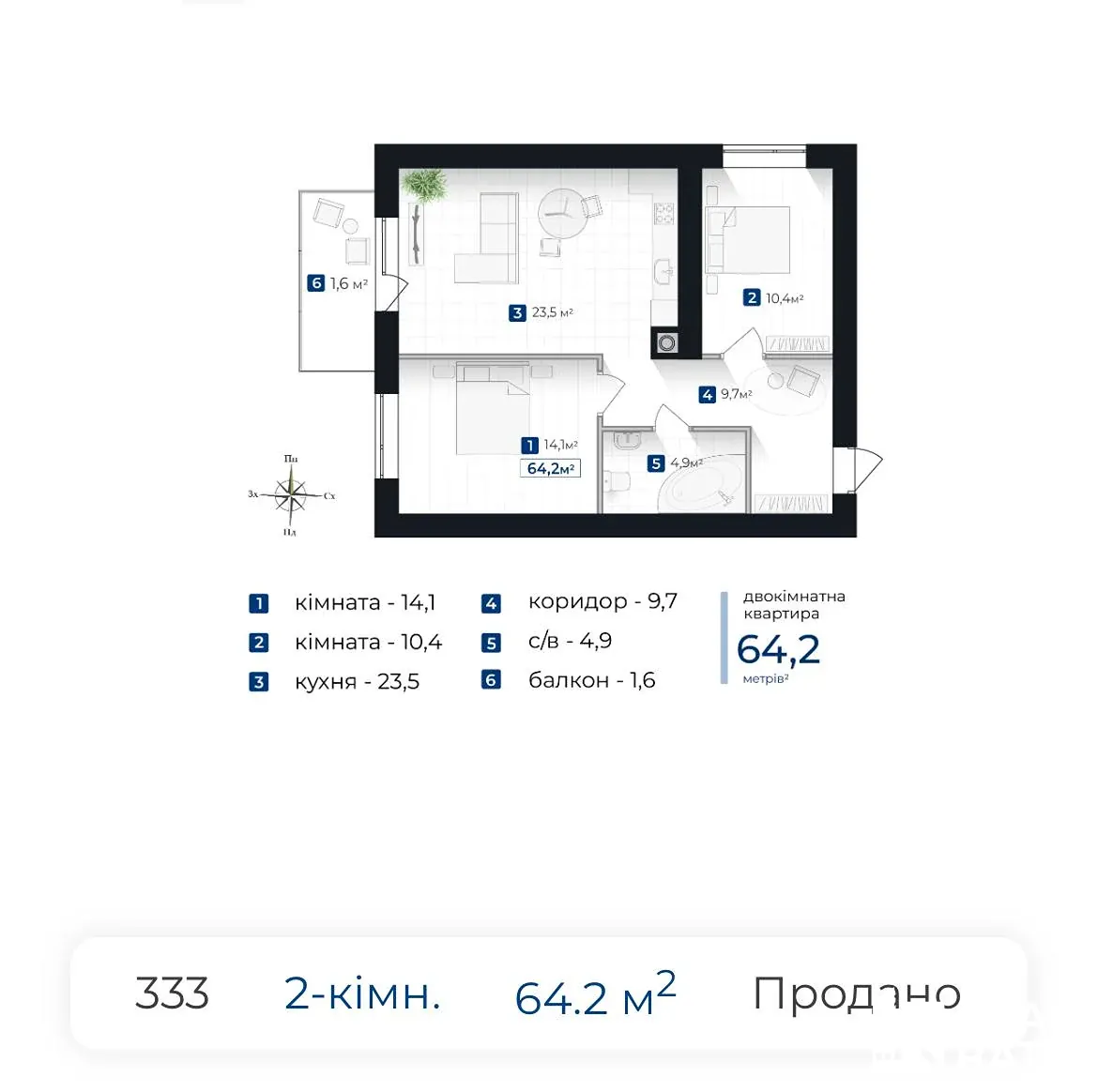 Продаж три кімнатної квартири у компришівська плексі закритого типу ЖК Опришівська Слобода