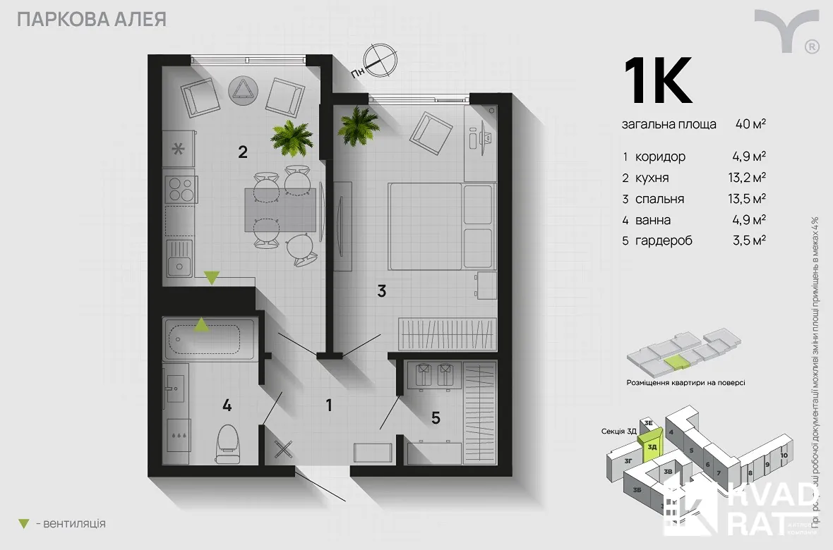 Комфортна квартира в затишній локації з підземним паркінгом 4 поверх Готова до завершення