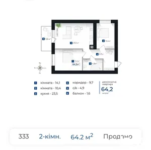 Терміновий продаж двох кімнатної квартири з ціною 760 за 1 м2