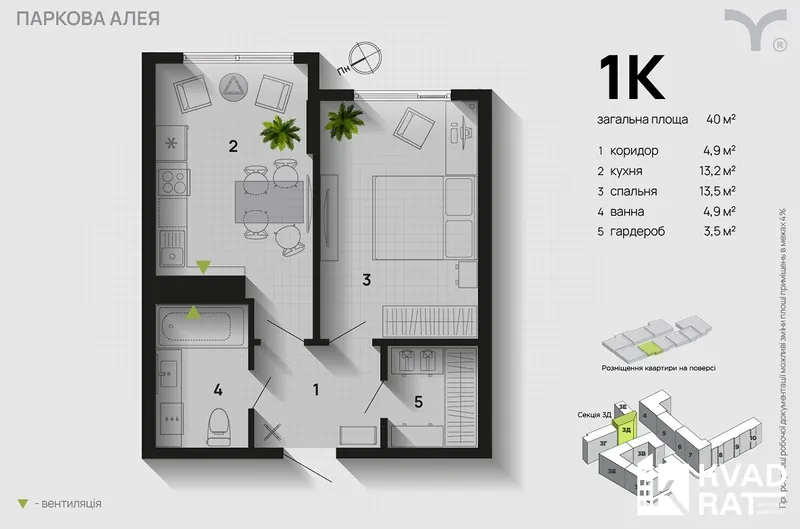 Затишна 1-кімнатна квартира 39 м у ЖК від надійного забудовника Благо