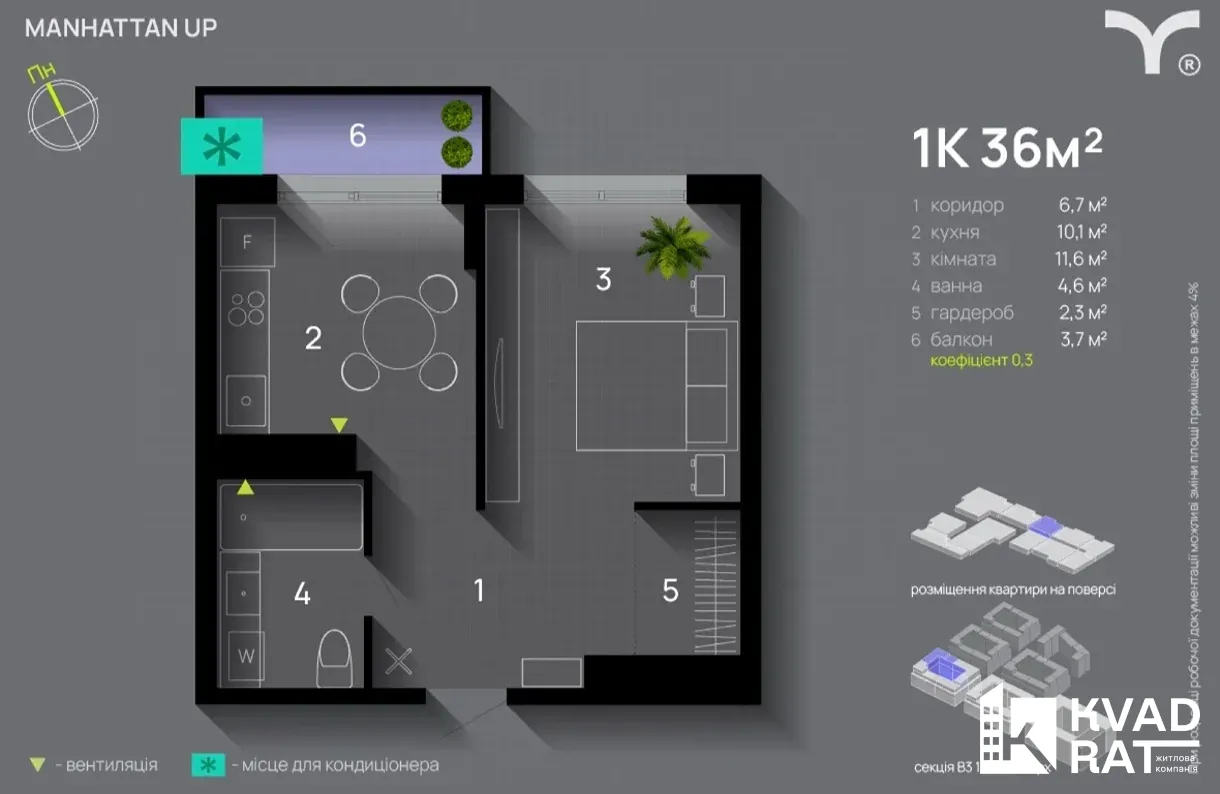 1 кім квартира в ЖК Manhattan Up з чудовим плануванням