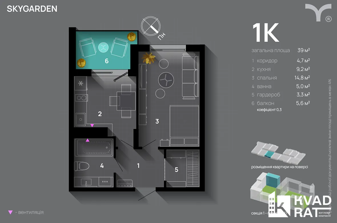 Skygarden Перша черга! 2-х кім кв.