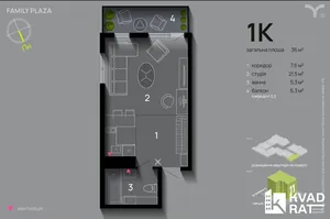 Квартира площею 36м2 в ЖК Family Plaza на комфортному поверсі