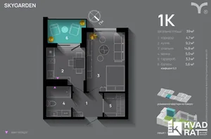 1 кім квартира 41 м2 на 6 поверсі в Sky Garden! Готова секція