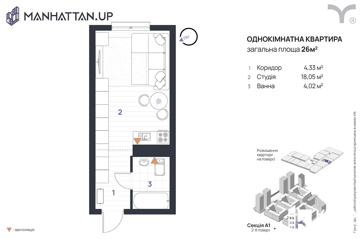 Укомплектована півторачка з ремонтом в ЖК Manhattan! 6 поверх!