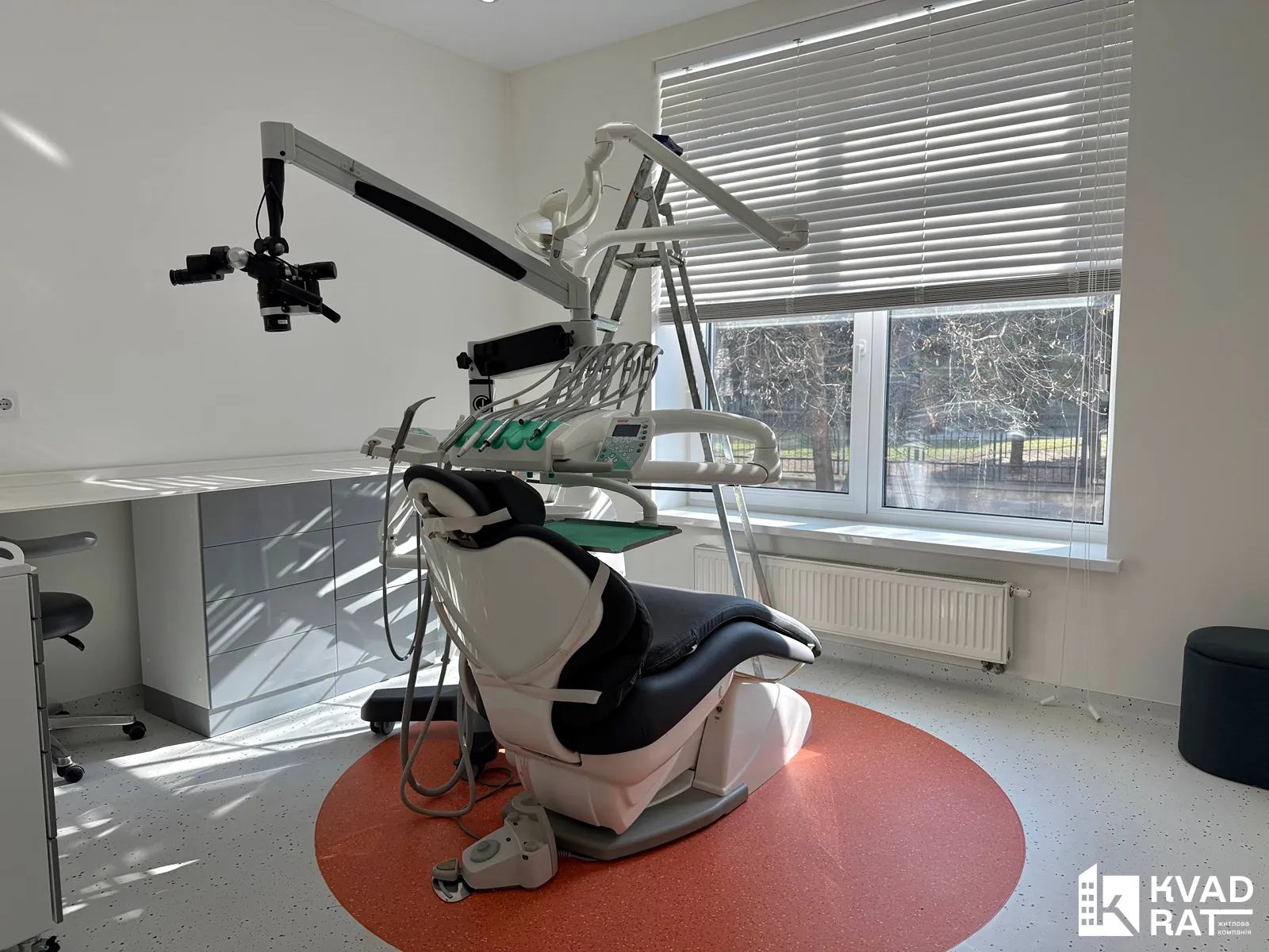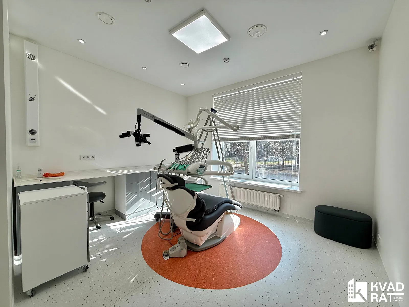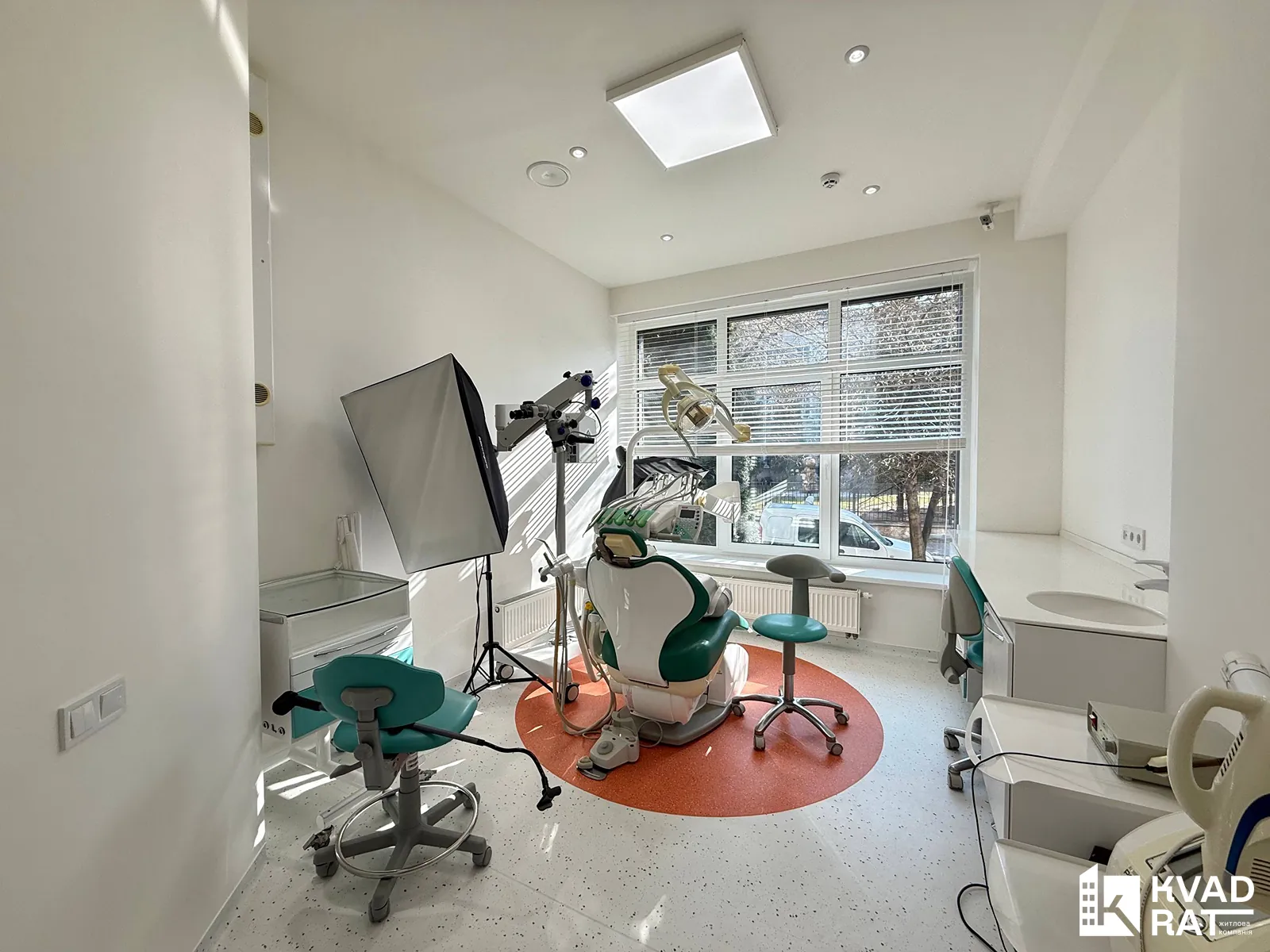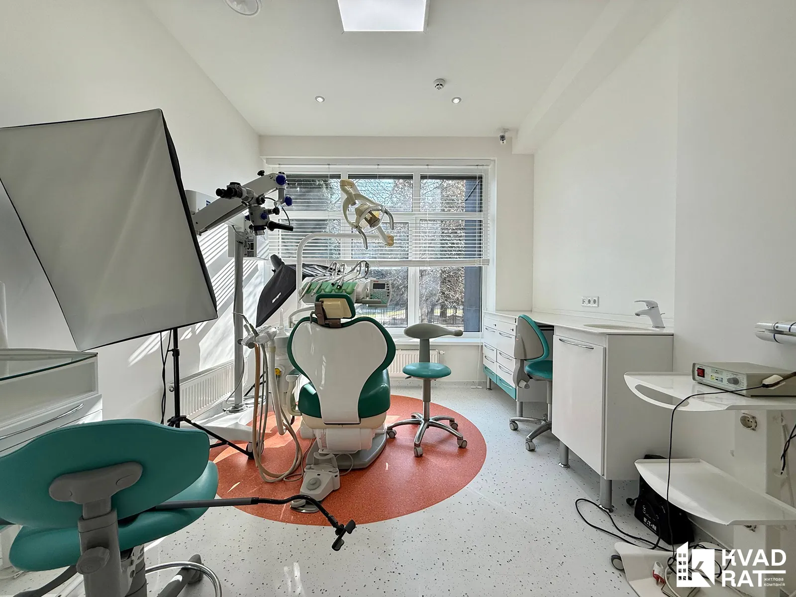 3-ри окремі робочі кабінети, оснащені сучасними стоматологічними установками, мікроскопами та всіма необхідними меблями й обладнанням.
