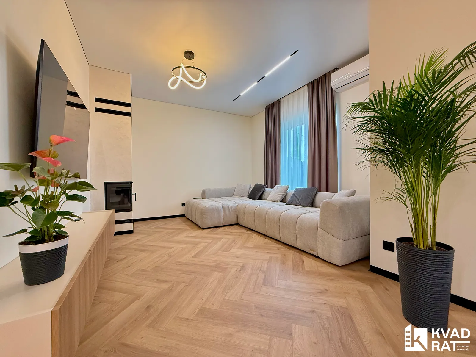 - простора зона відпочинку з великим кутовим диваном, телевізором та кондиціонером