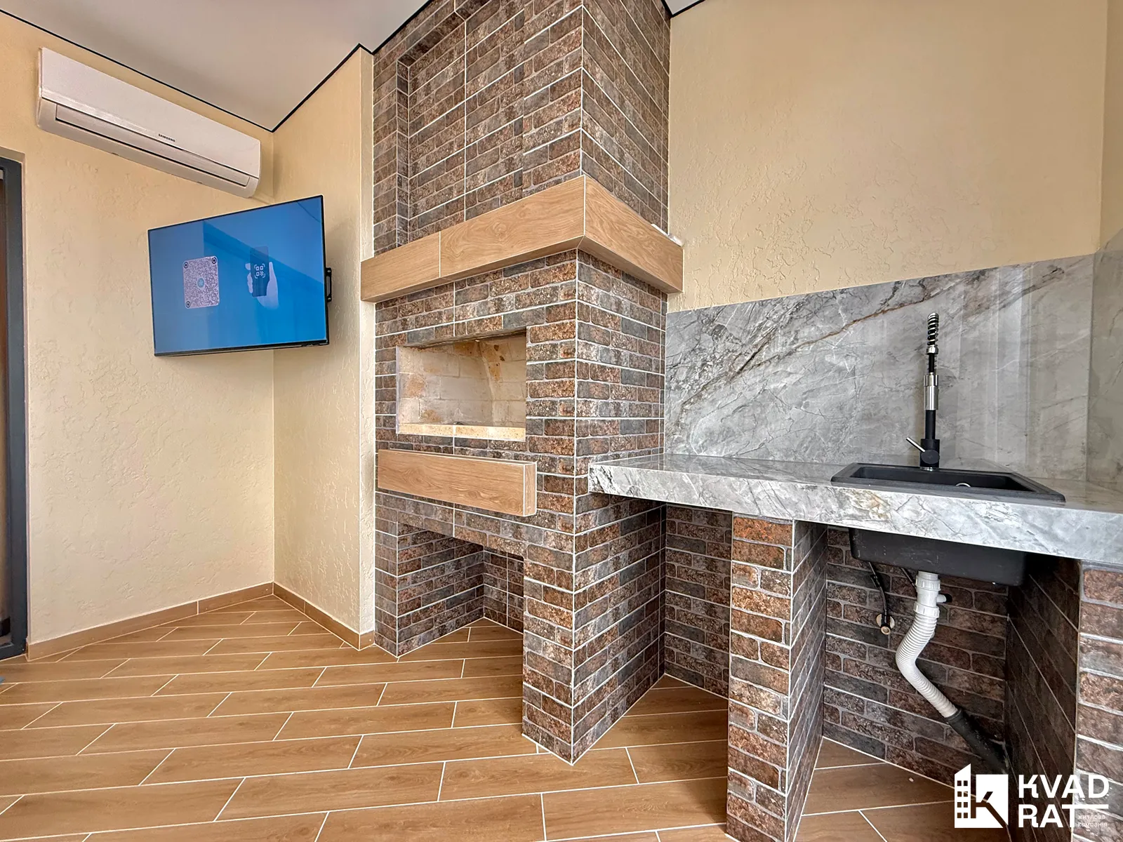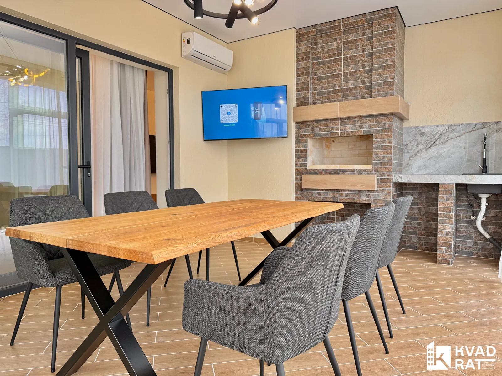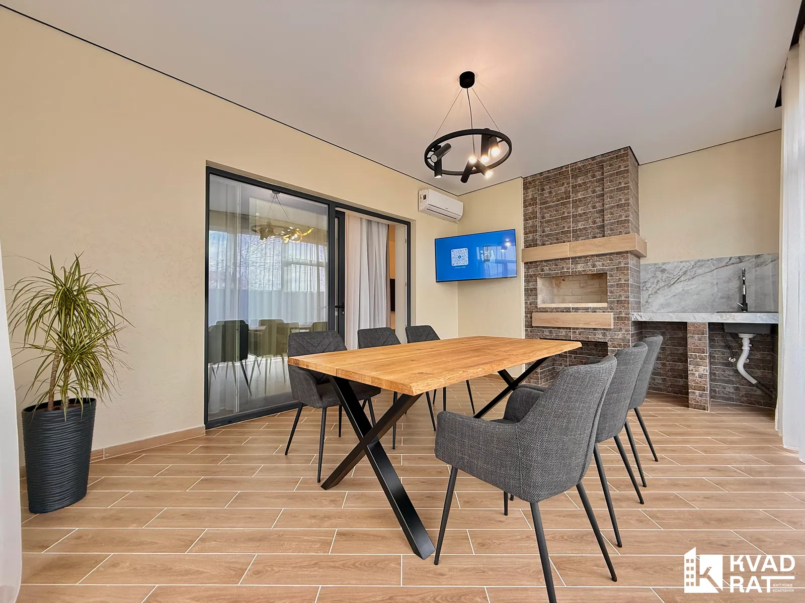 - велика кухня-студія з виходом у власну зону барбекю (стіл, крісла, телевізор, кондиціонер)