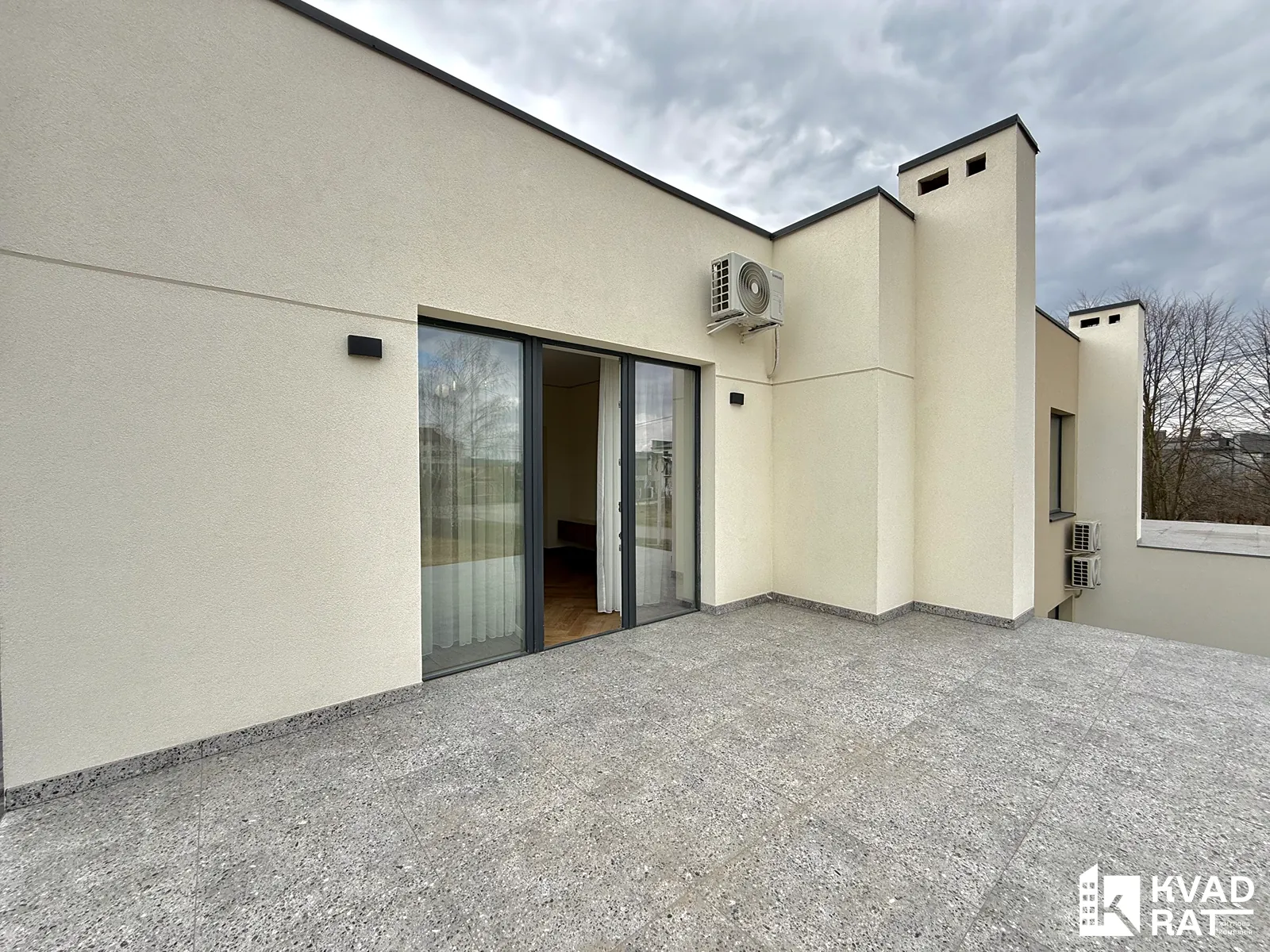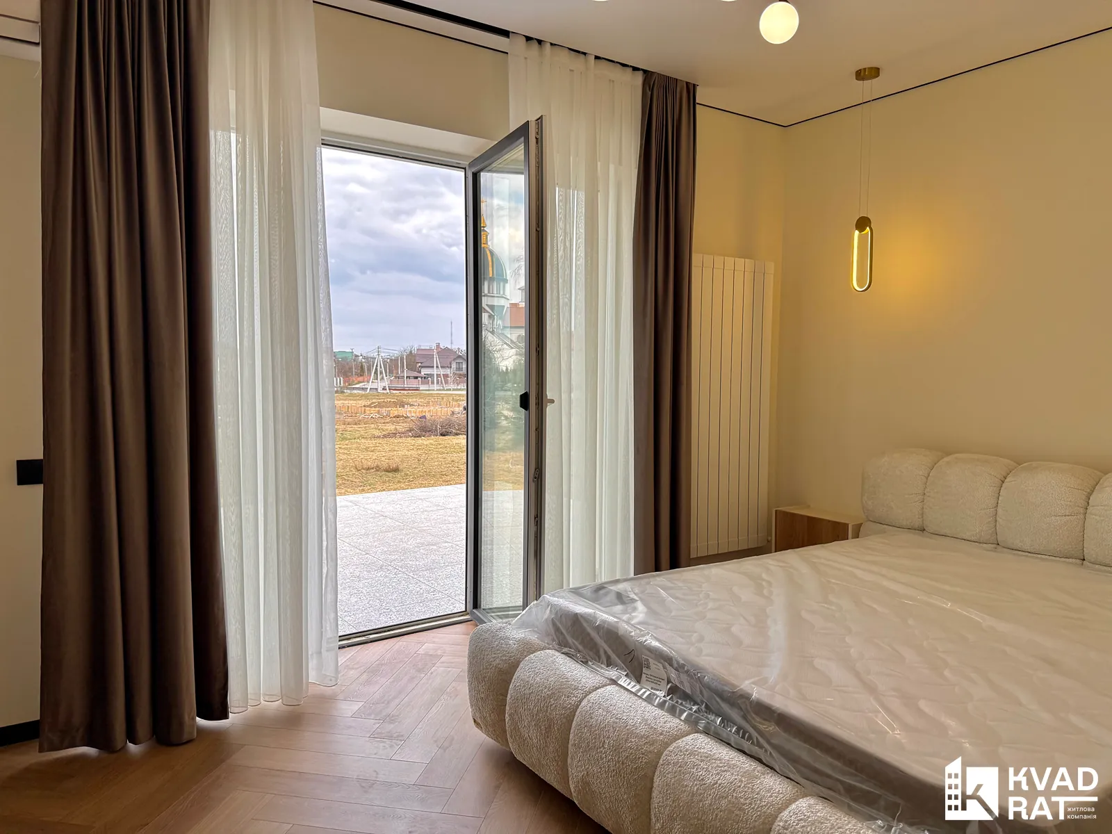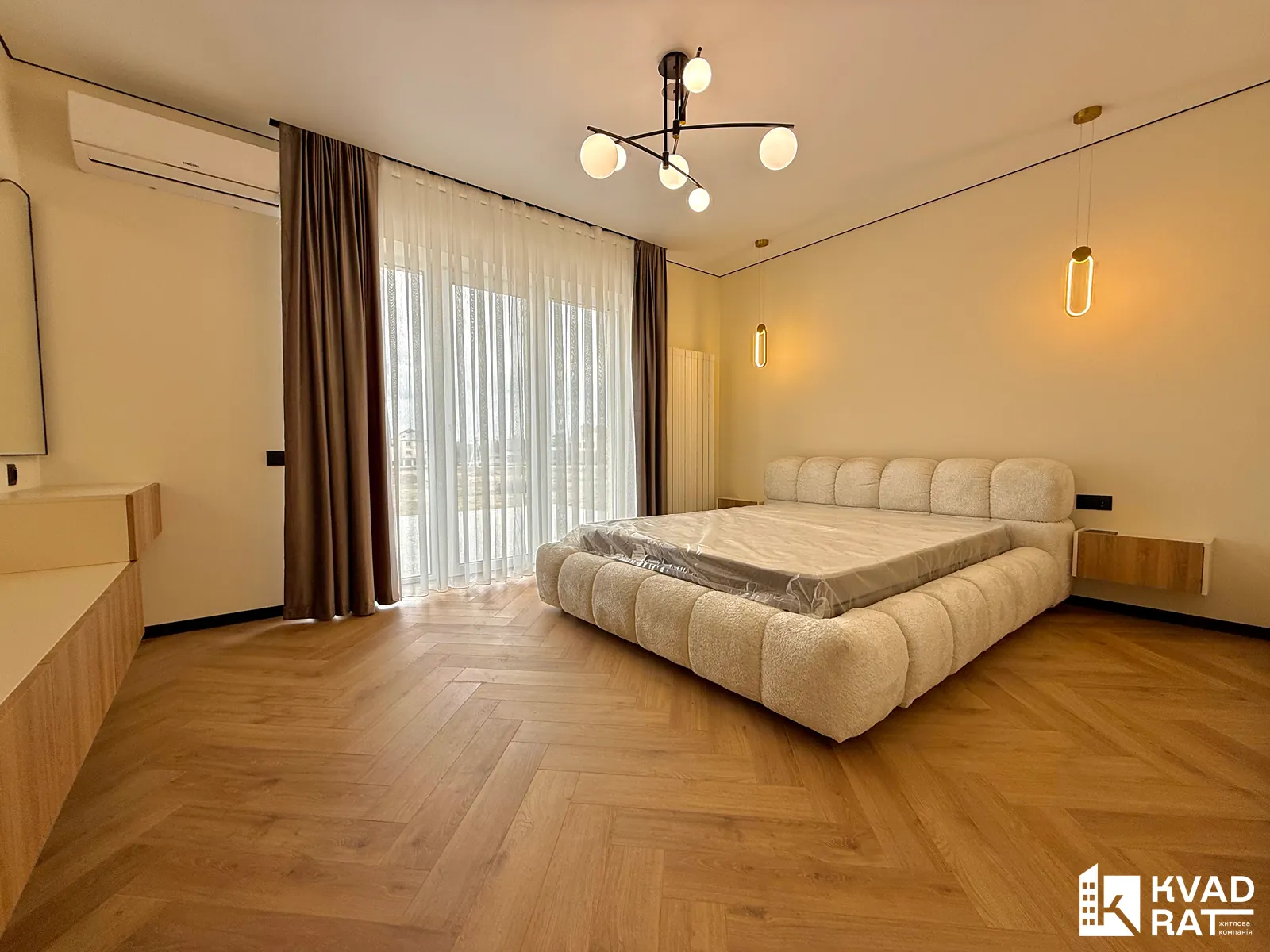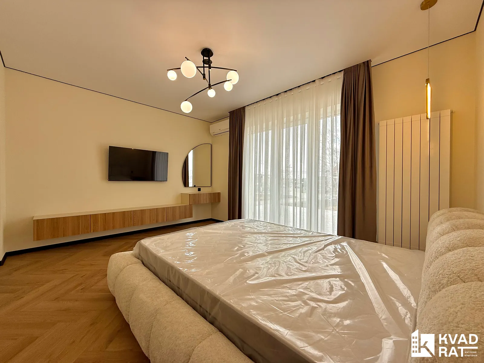- укомплектована спальня з великим ліжком, телевізором, кондиціонером, бюті-зоною та виходом на велику терасу-балкон