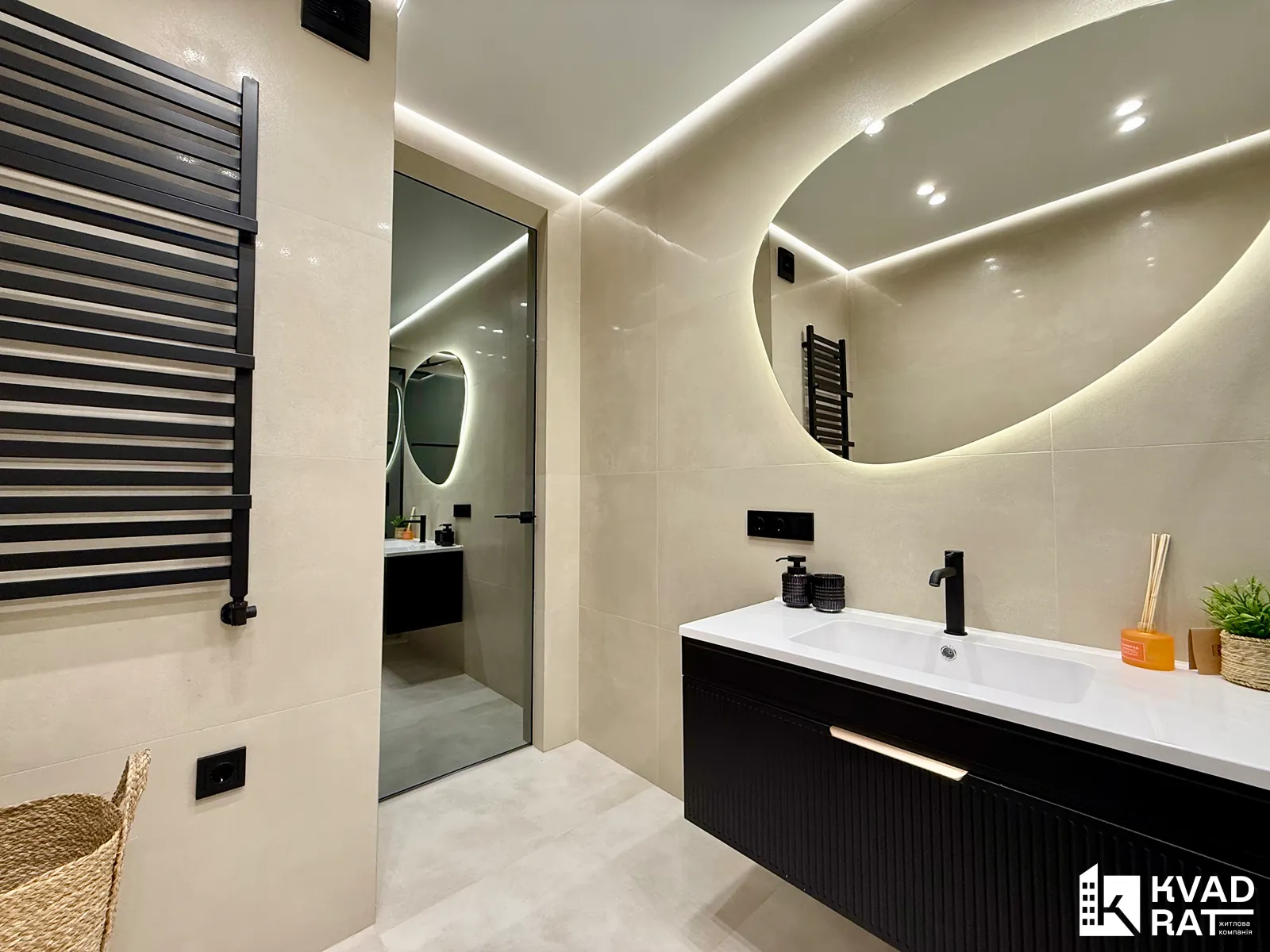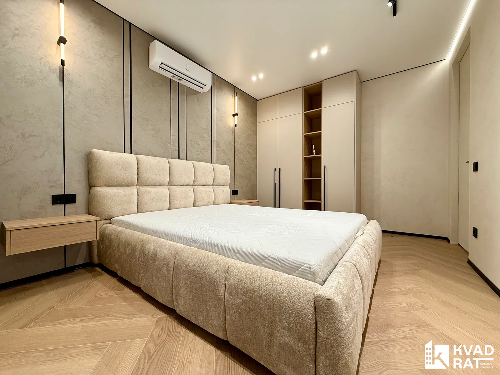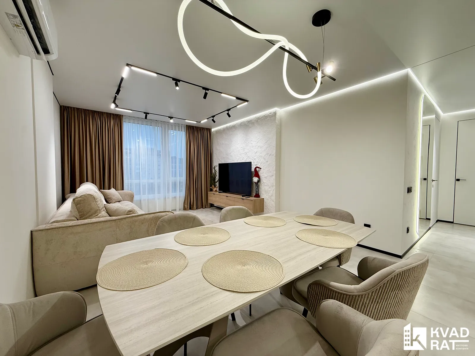 Планування продумане та функціональне кухня-студія для комфортного сімейного простору дві окремі спальні кімнати просторий санвузол та велика зона прихожої. У квартирі виконано якісний та стильний ремонт із використанням декоративної штукатурки на стінах. Усі меблі виготовлені під індивідуальне замовлення