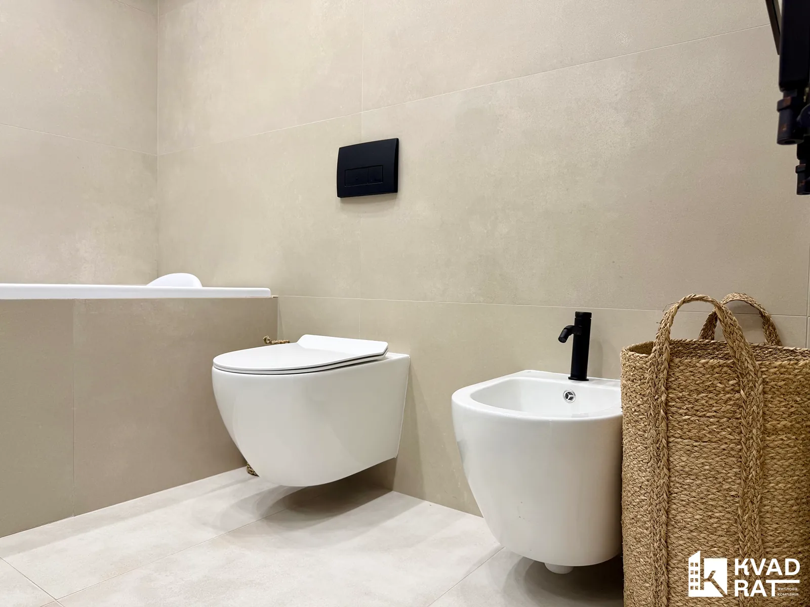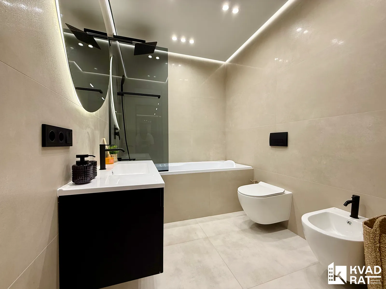 Квартира повністю укомплектована вмонтованою побутовою технікою духовка мікрохвильова піч індукційна варильна поверхня вбудована посудомийна машина холодильник а також пральна та сушильна машини. Спальні кімнати просторі та світлі з гарним видом у бік міста