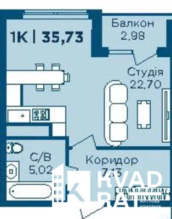 Площа квартири дозволяє легко зробити повноцінне перепланування: відокремити спальню від кухні-вітальні або облаштувати простору студію під ваш стиль життя. Є балкон, що додає світла та простору.