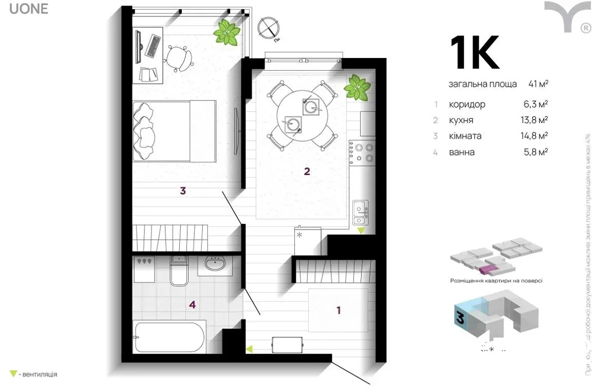 Концепцією U ONE передбачено будівництво багатоповерхового будинку квартального типу з правильними побутовими рішеннями. Власний закритий двір, дитячий майданчик, ландшафтний дизайн, гаражі, панорамне скління, 2 сходові і 2 ліфти у кожному підʼїзді, продумані планування, закрита територія - все це забезпечить щоденний комфорт і насолоду від перебування удома. А віддалене розміщення від автомагістралі вбереже мешканців від шуму та загазованості повітря. Для втілення проєкту ми обрали локацію, яка вдало поєднує сучасну інфраструктуру та домашній затишок. Наявна інфраструктура району перетворить рутинні турботи в захопливі заняття. Поруч з домом розташовані ТЦ Велес, ТЦ METRO, екозона Вовчинецькі гори.