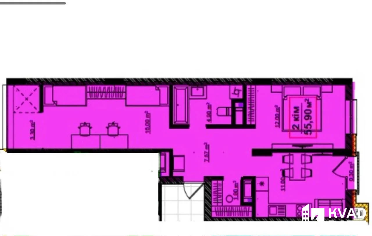 Загальна площа квартири 56 м2