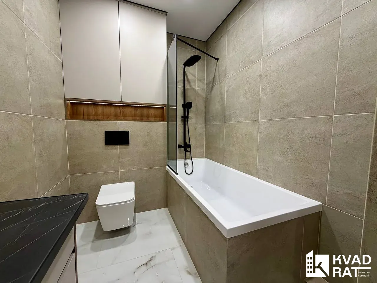 Також із функціональним плануванням: простора кухня студія із зоною відпочинку, оерема спальня кімната із великою вбудованою шафою. Суміжний санвузол із ванною та вхідна зона із шафою та дзеркалом у повний ріст.