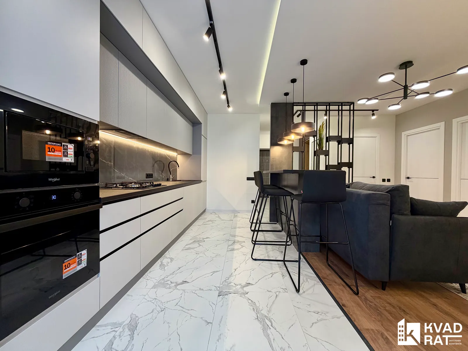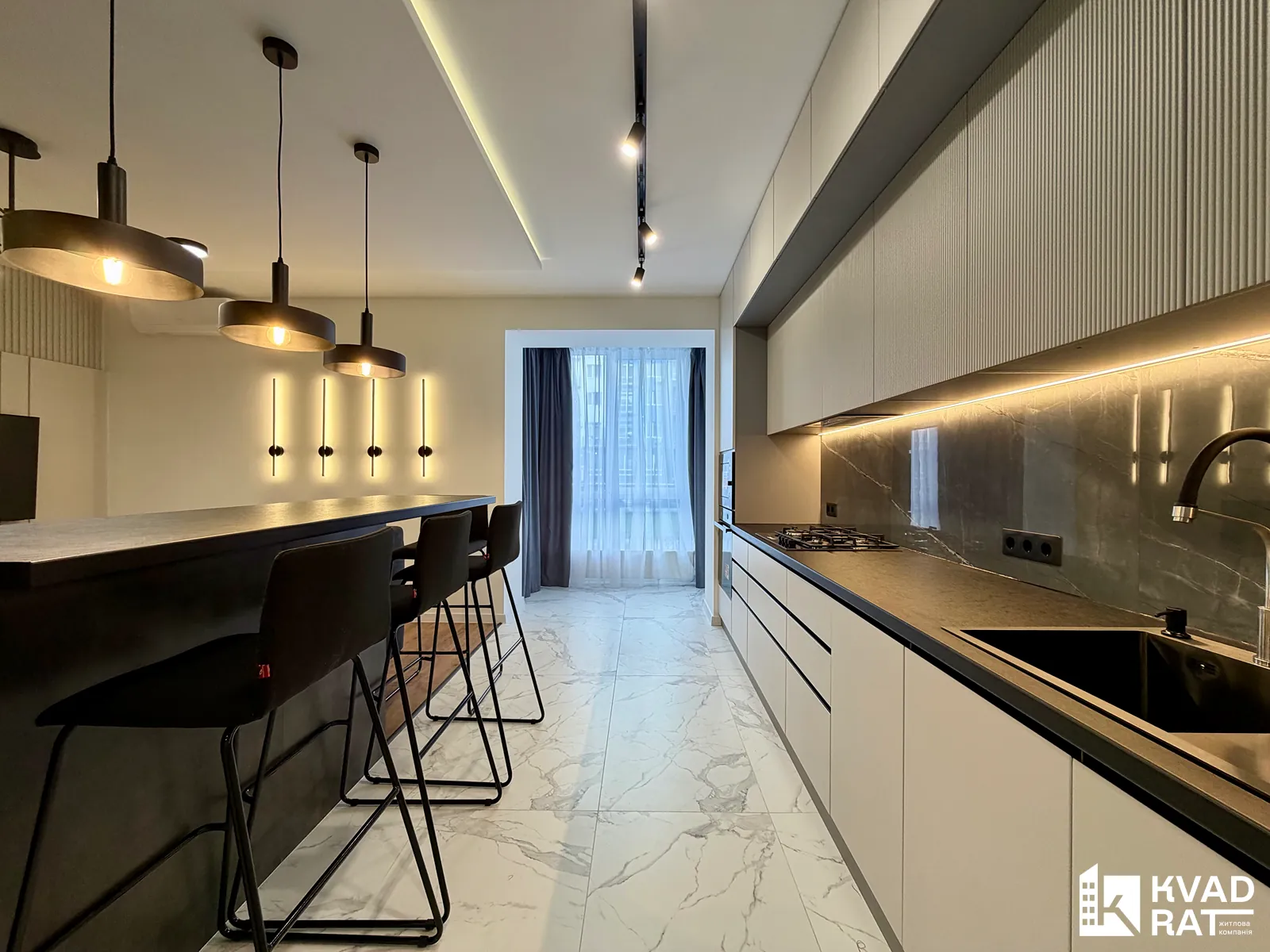 Зроблений сучасний дизайнерський ремонт, використовувалися дорогі матеріали. Квартира повністю укомплектована меблями та технікою, а саме: