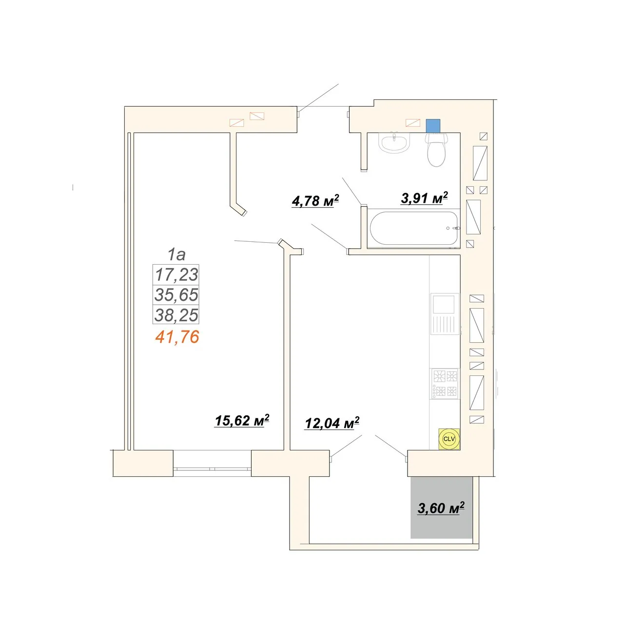 Площа 38.3м2