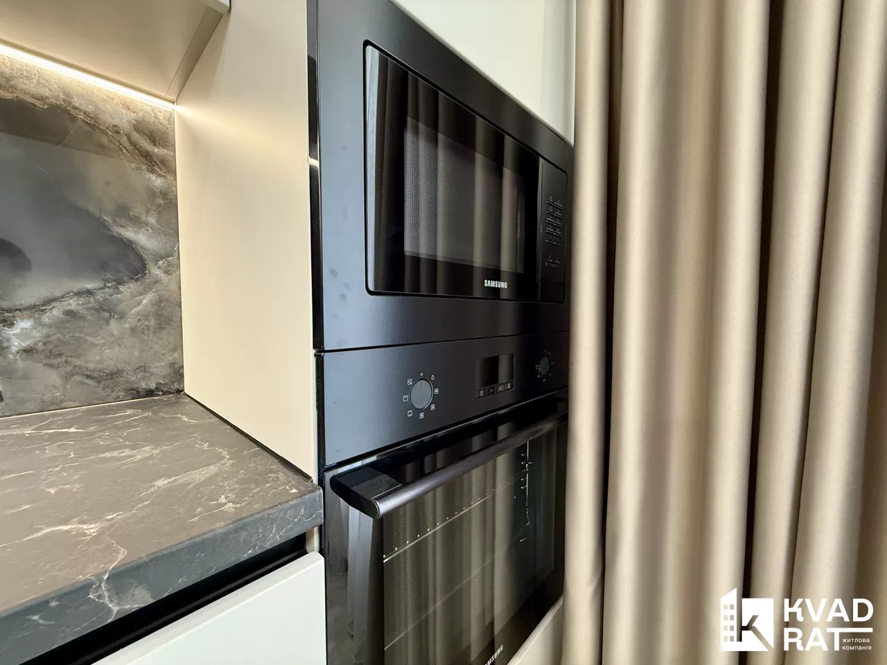 Стильна кухня лаконічний дизайн, дорога плитка, техніка Samsung