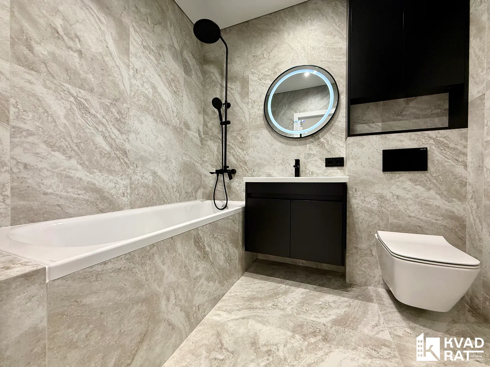 Санвузол суміжний, з ванною, передбачено місце для пральної машинки.