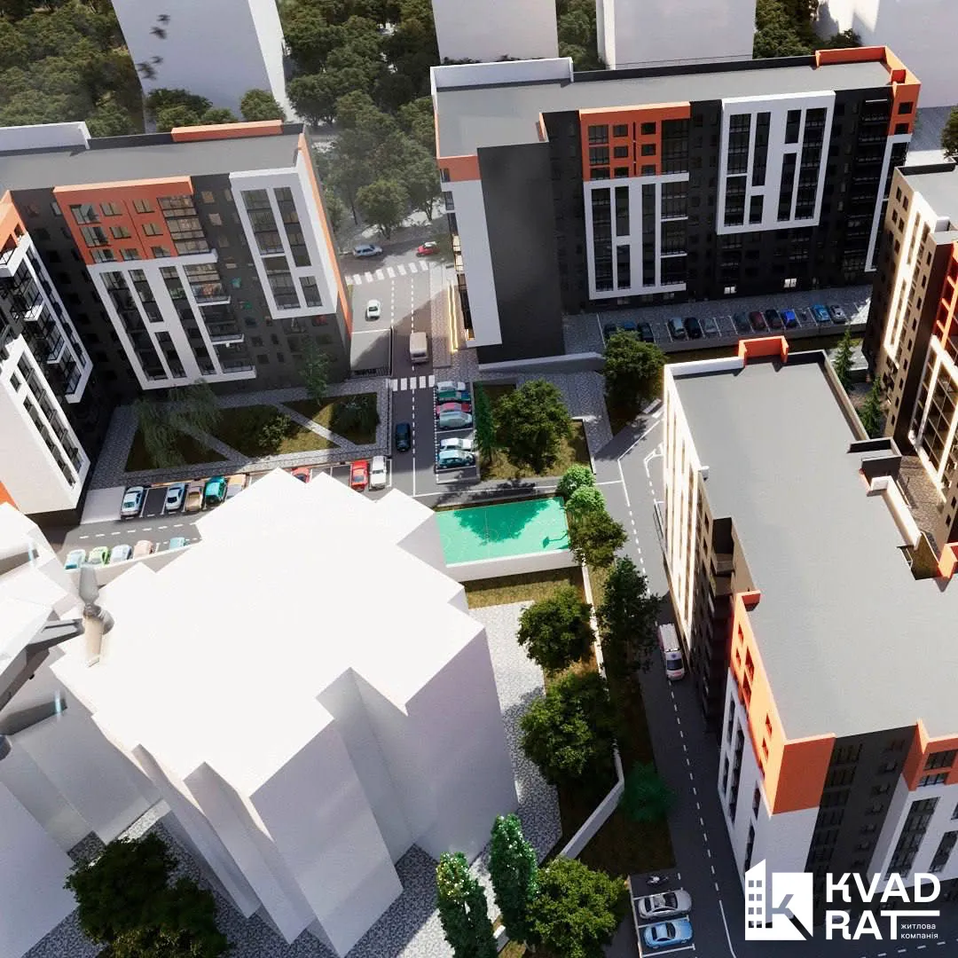 На території передбачено підземний паркінг та облаштовані зони відпочинку.