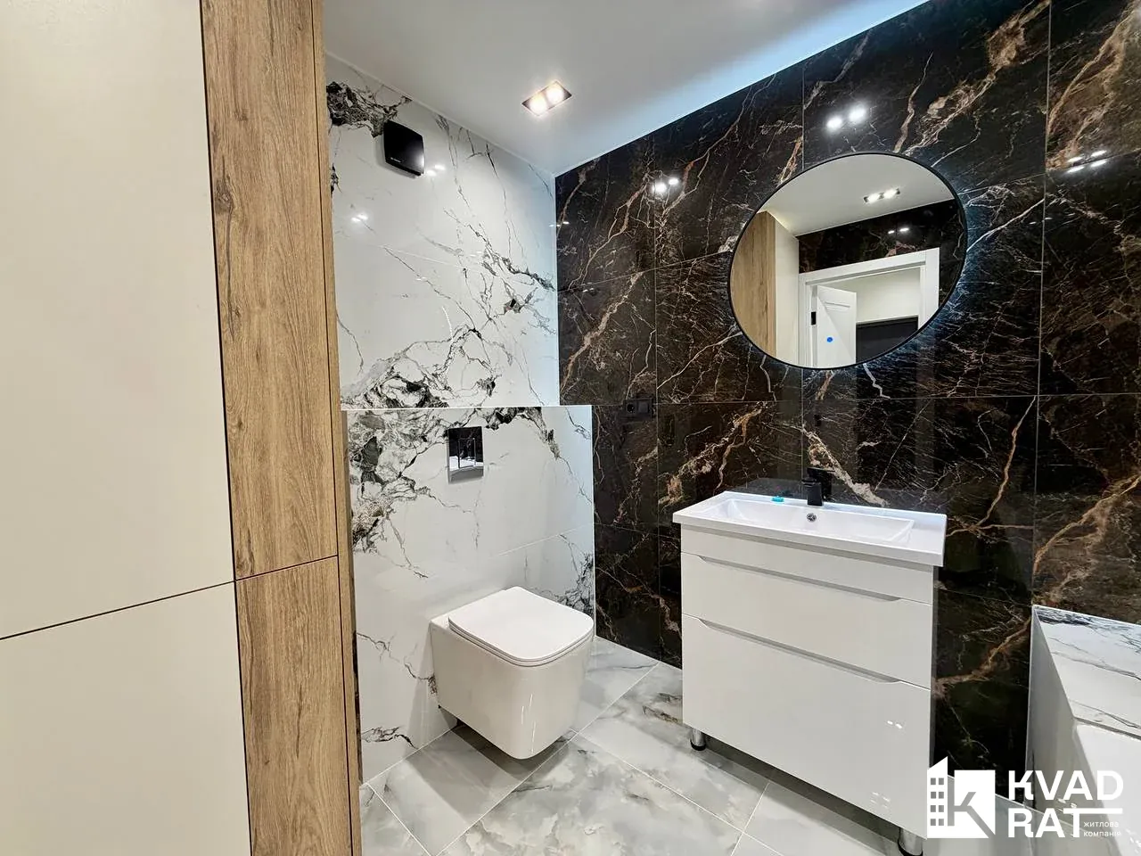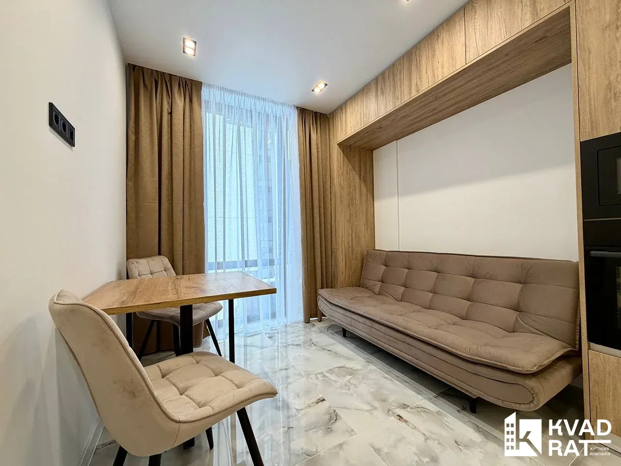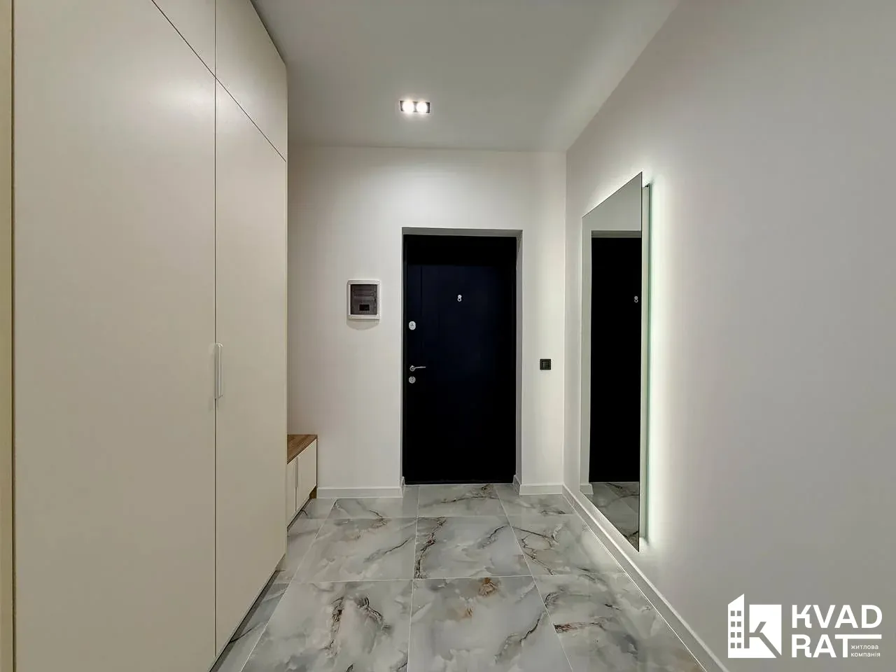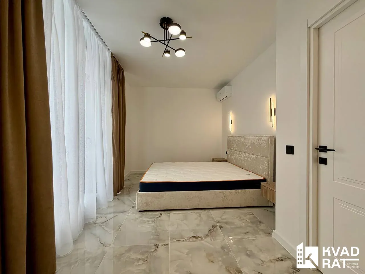 Квартира площею 44 м2 вдало перепланована у кухню-студію з видом на озеро, простору спальню кімнату з відкритим балконом, який виходить у внутрішній двір також є ніша під гардероб. Суміжний санвузол із ванною та вхідна зона із шафою та дзеркалом у повний ріст.