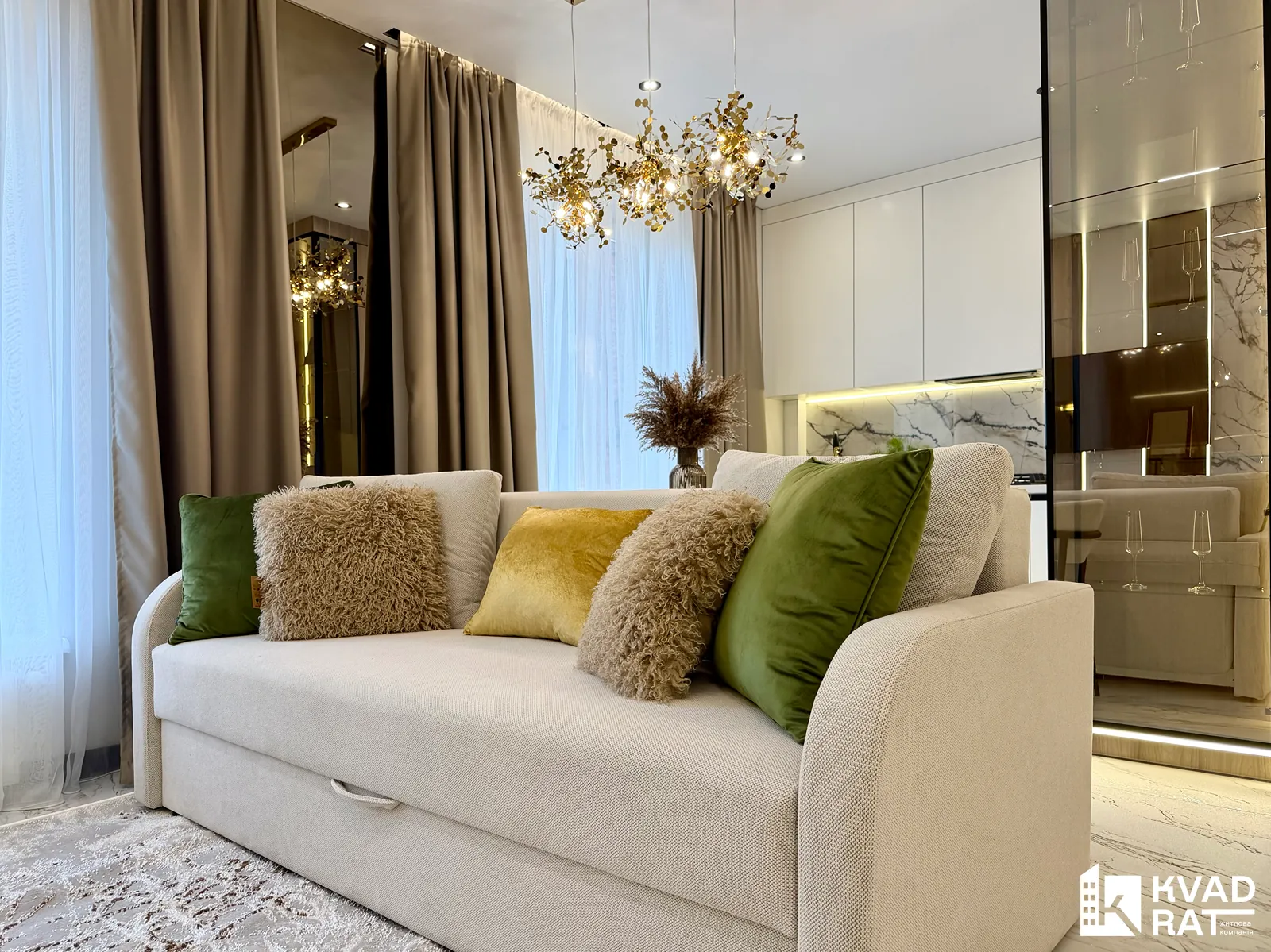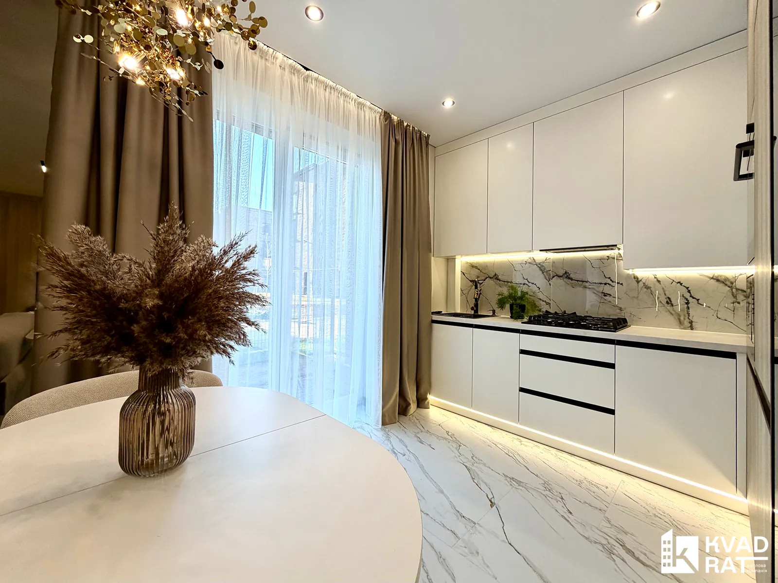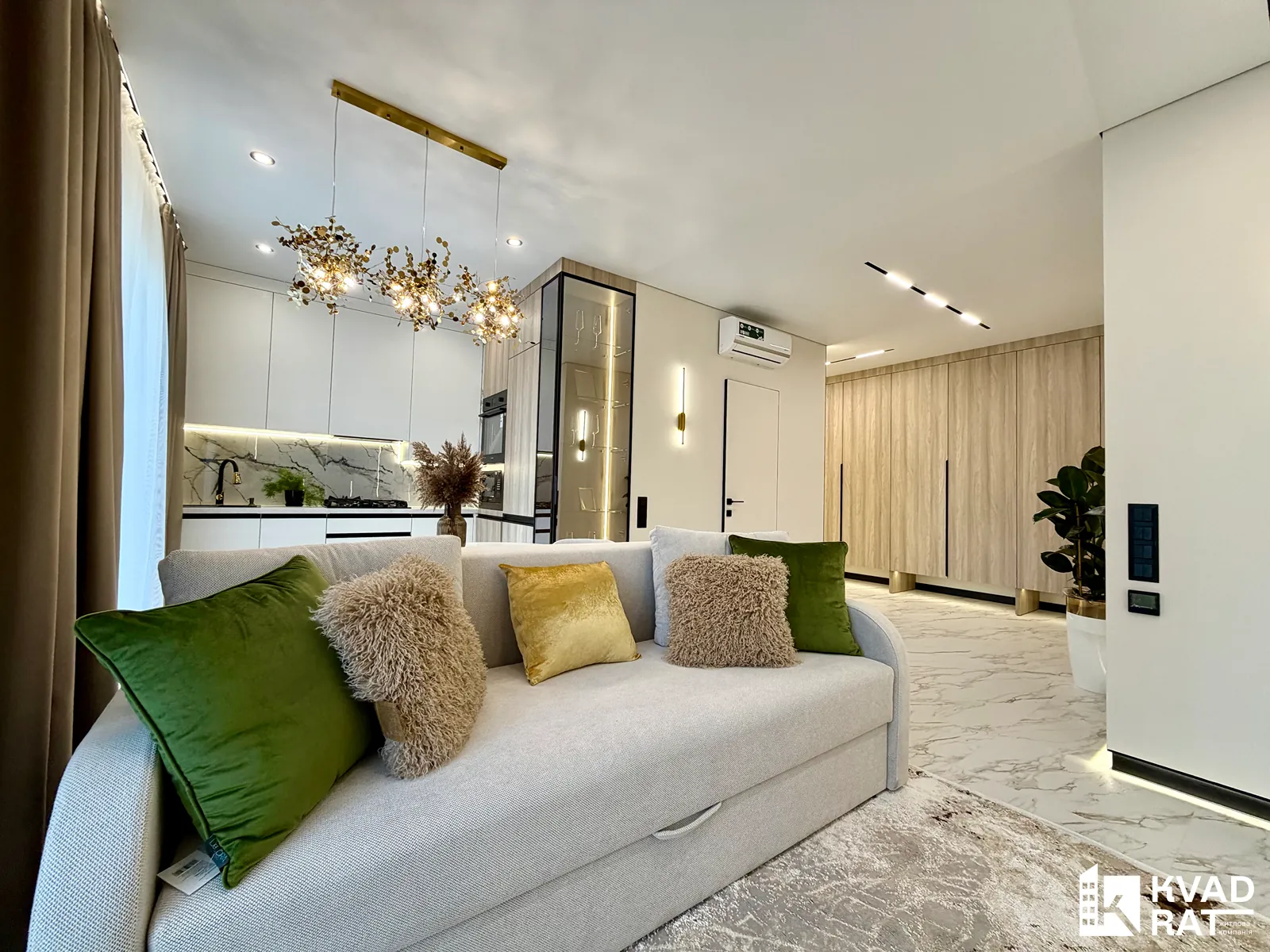 Стильна 2-кімнатна квартира з кухнею-вітальнею, розташована на комфортному 1 поверсі.