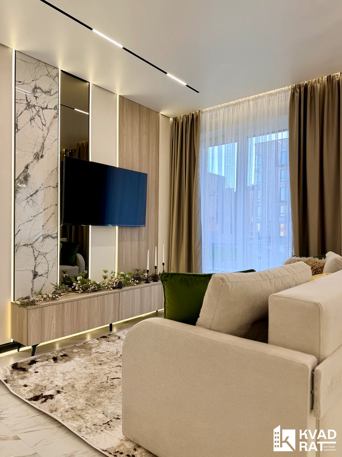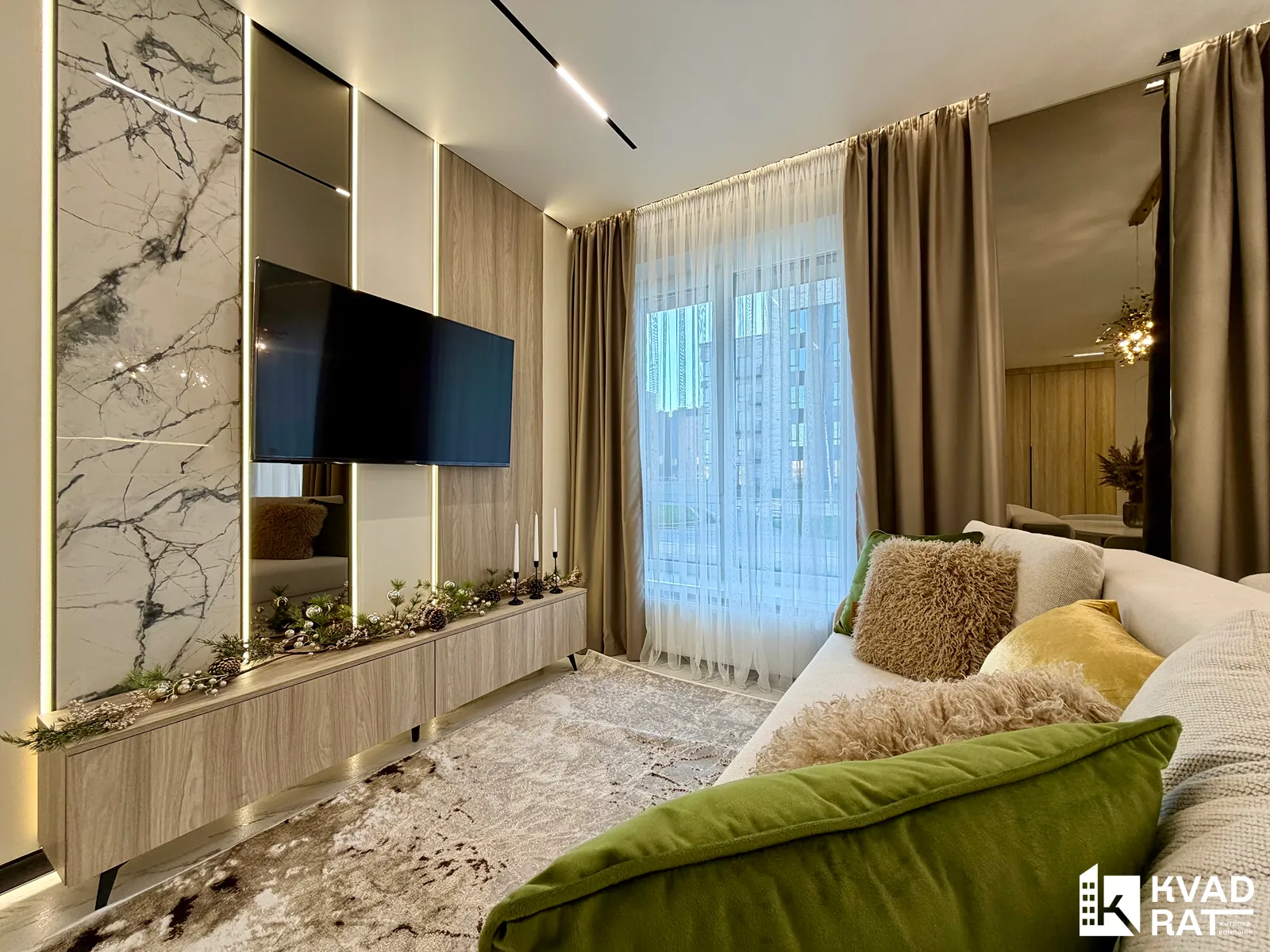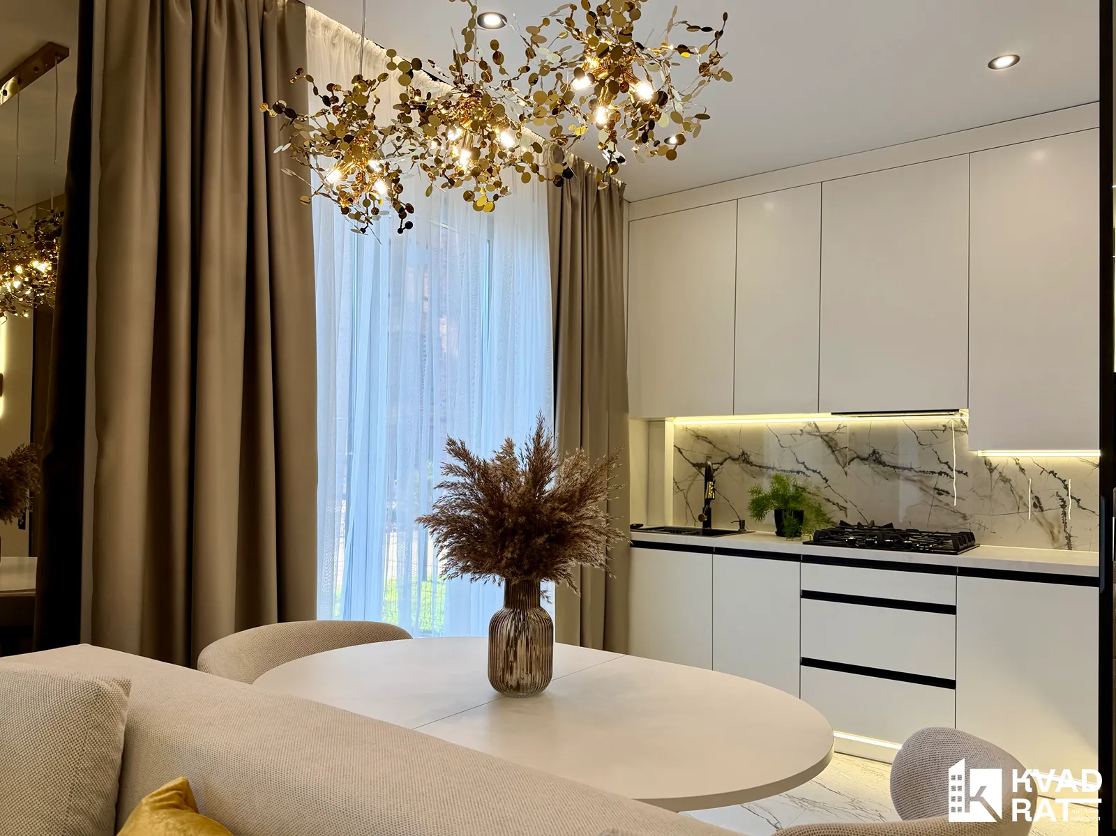 Стильна 2-кімнатна квартира з кухнею-вітальнею, розташована на комфортному 1 поверсі.