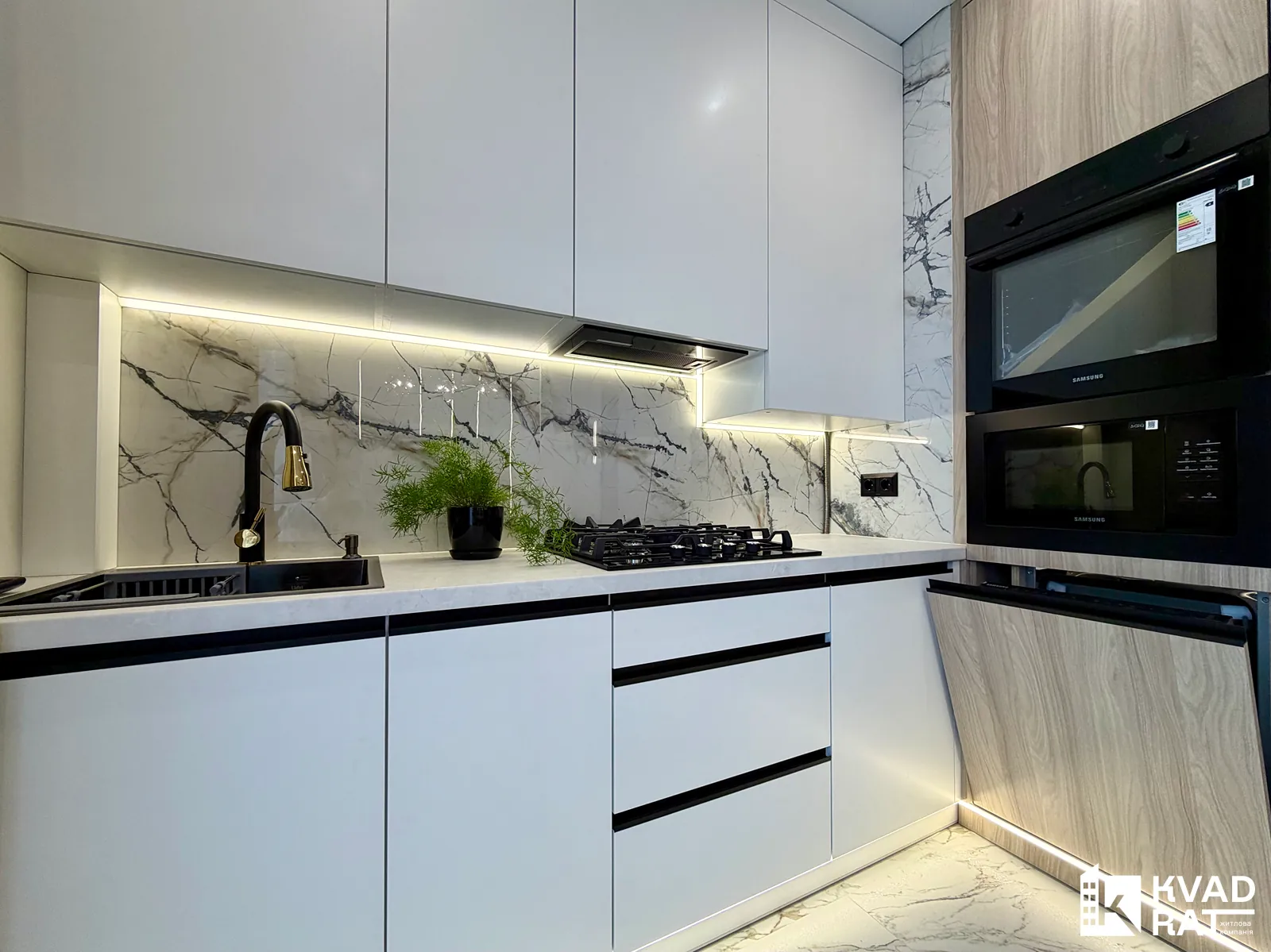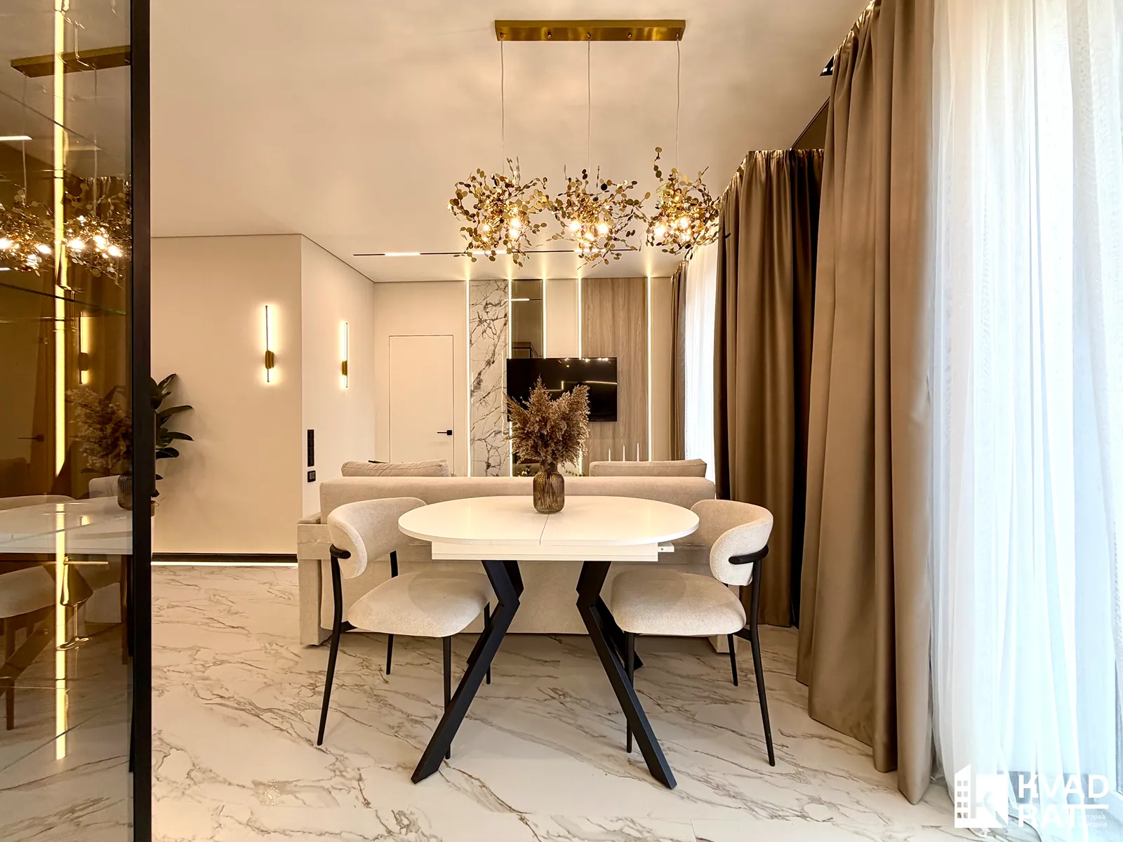 Встановлений підігрів підлоги по всій квартирі, терморегулятори з Wi-Fi, що дозволяють контролювати температуру дистанційно.