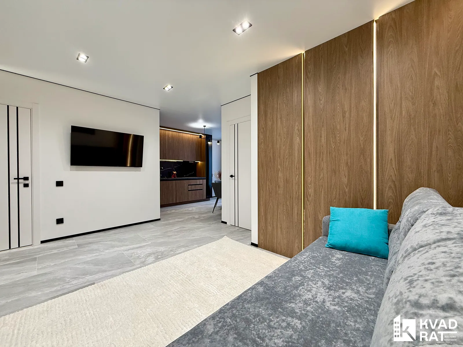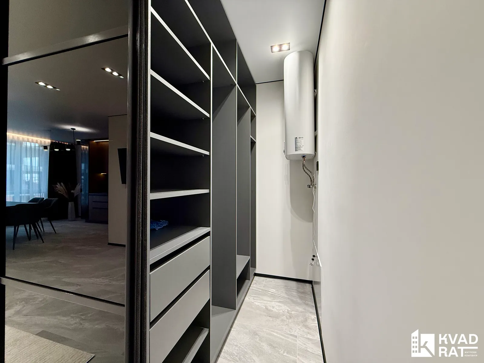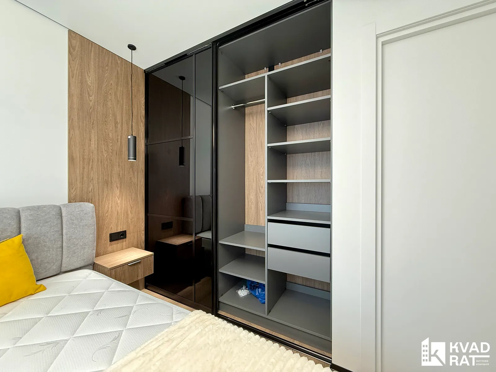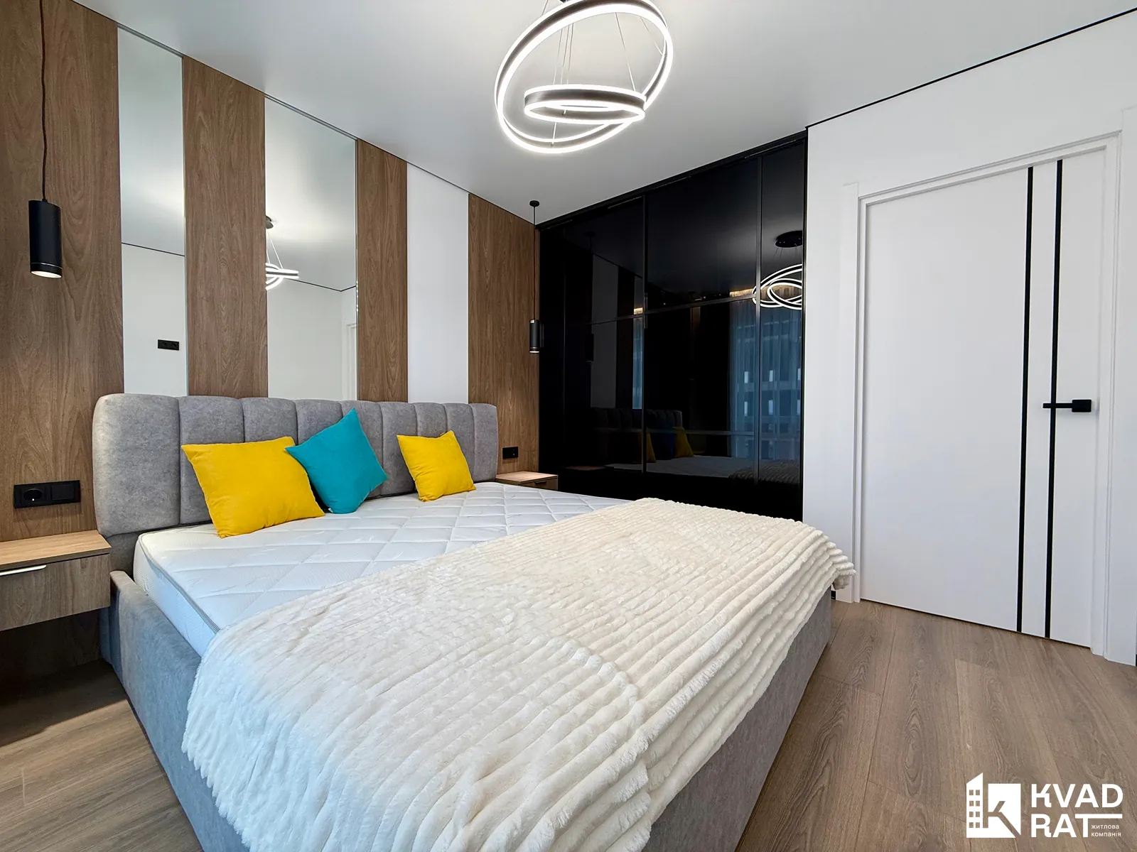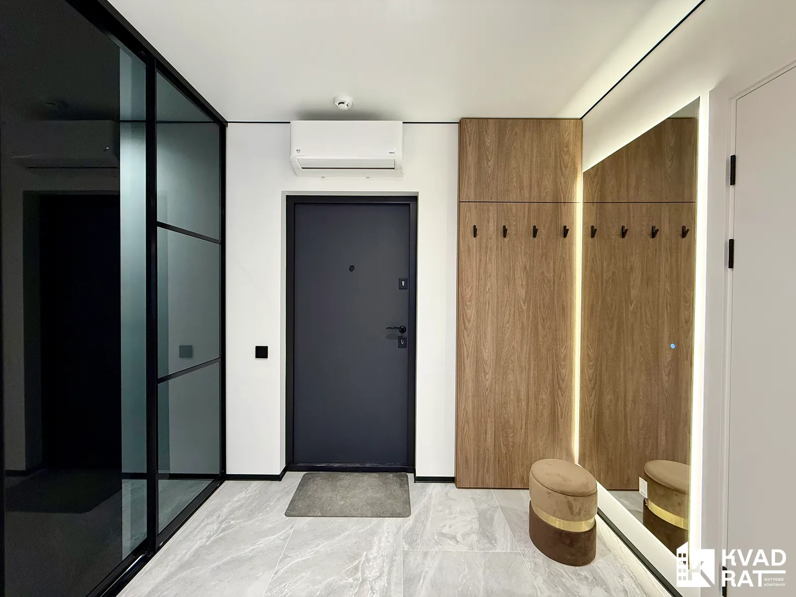 Квартира з якісним дизайнерським ремонтом, виконаним із використанням дорогих матеріалів. Продумане до дрібниць планування забезпечує максимальний комфорт для проживання: простора кухня, окрема спальня кімната, гардеробна, затишна зона відпочинку з розкладним диваном і телевізором, містка прихожа та сучасний санвузол.