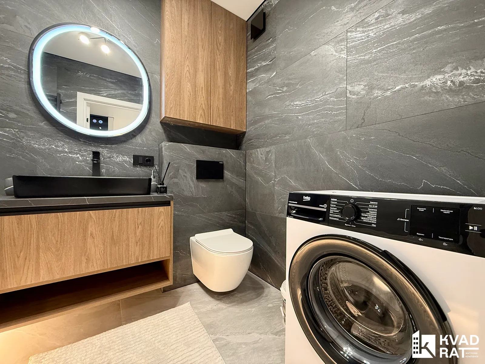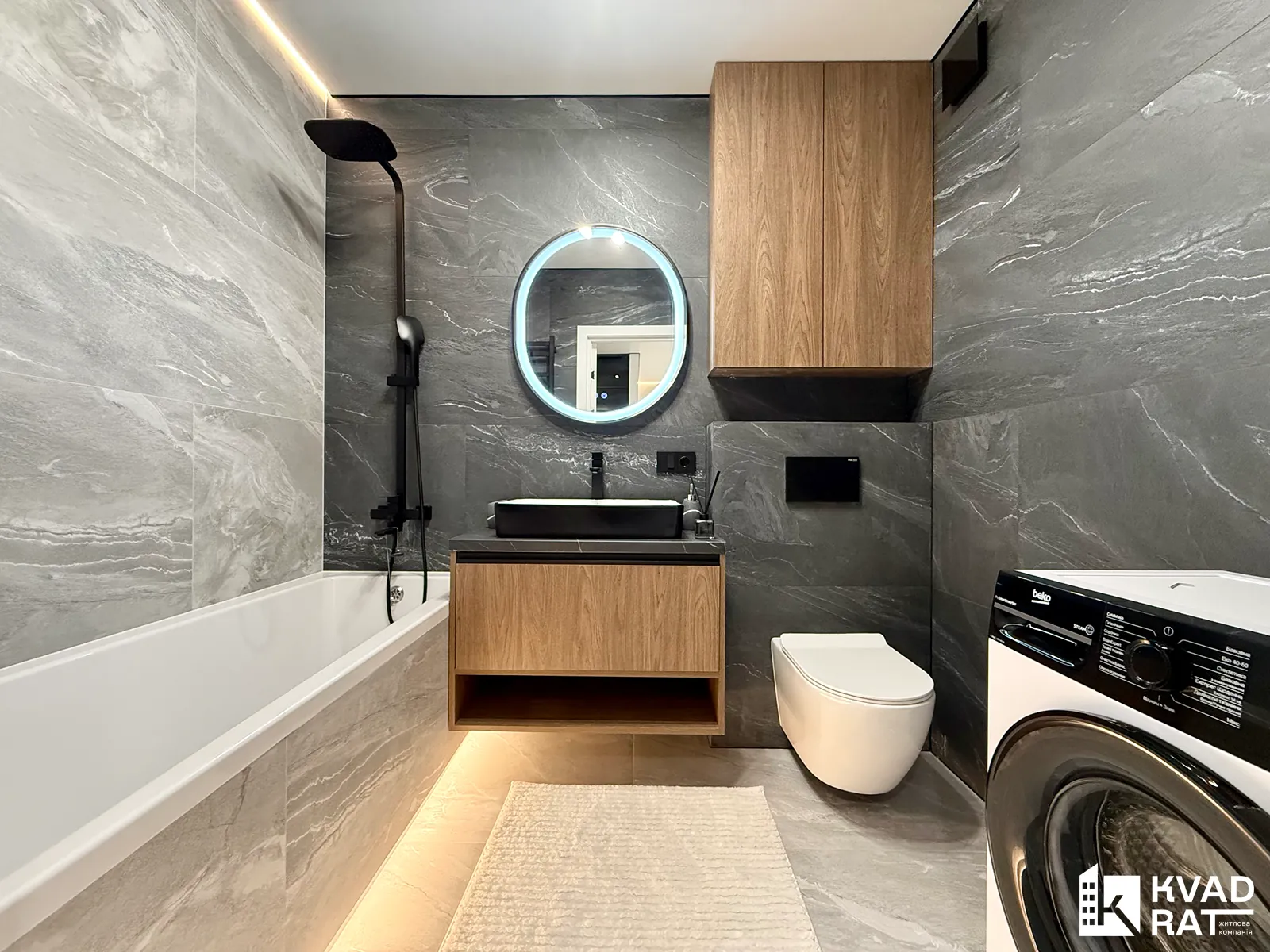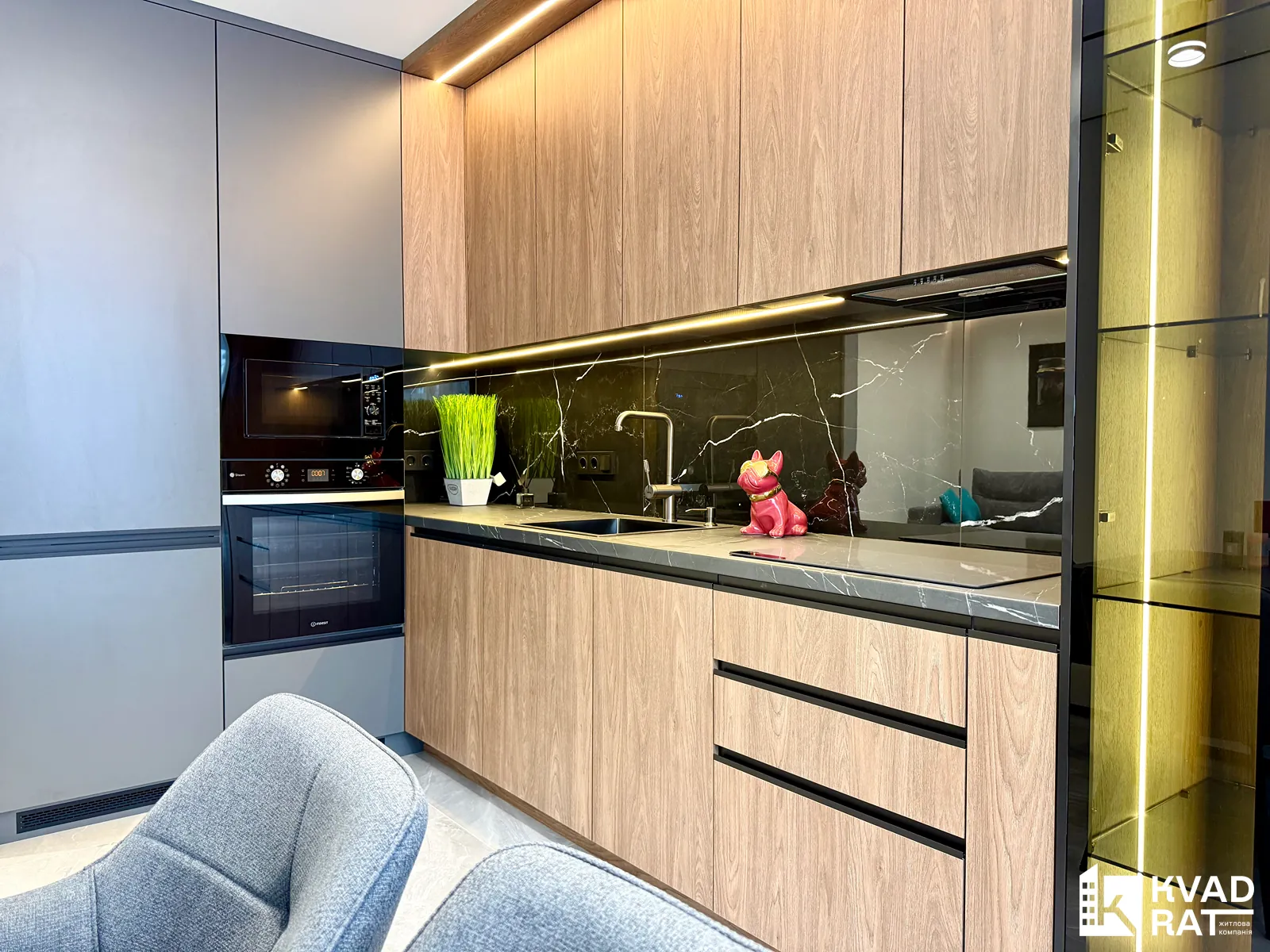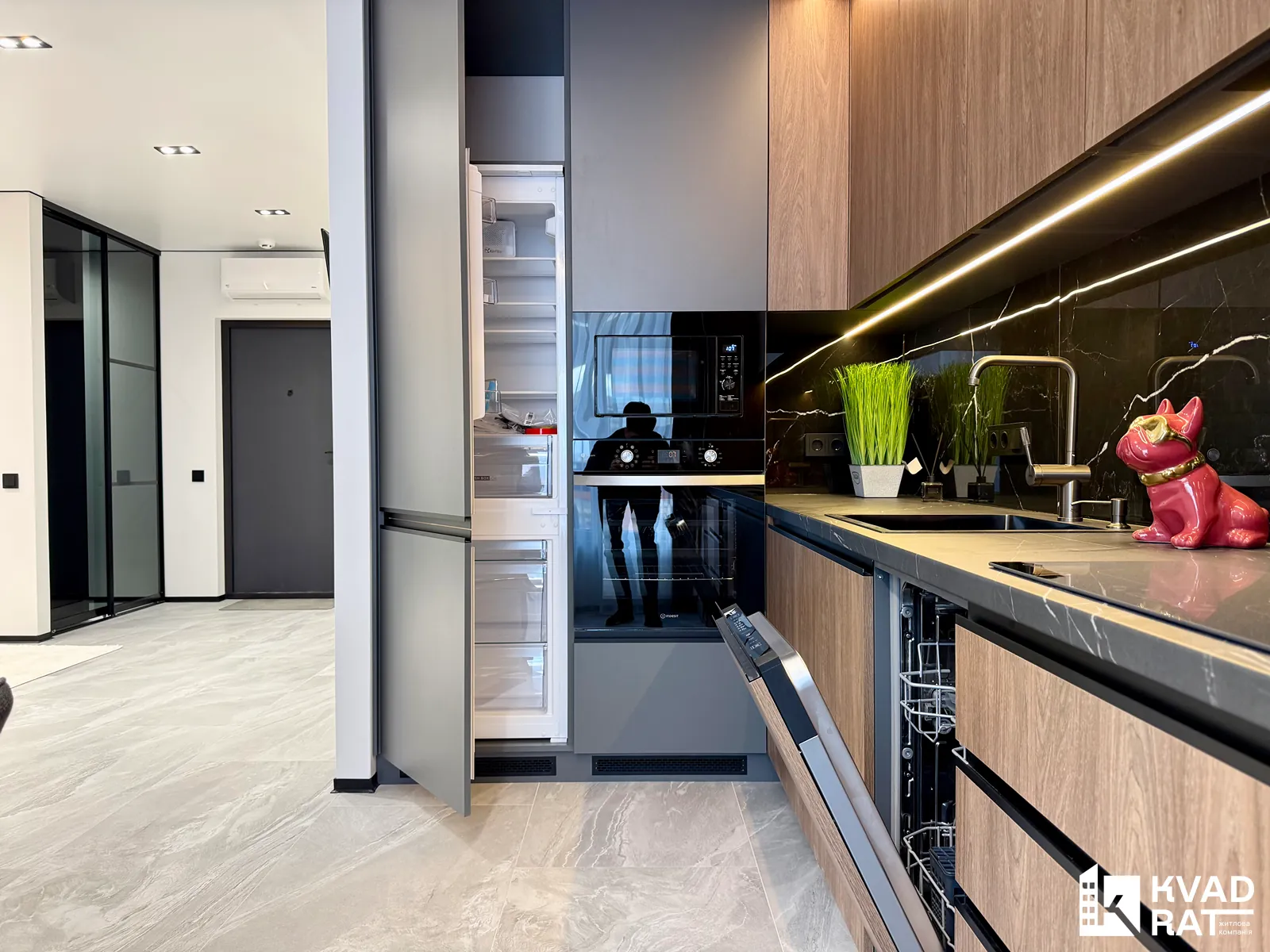 Квартира з якісним дизайнерським ремонтом, виконаним із використанням дорогих матеріалів. Продумане до дрібниць планування забезпечує максимальний комфорт для проживання: простора кухня, окрема спальня кімната, гардеробна, затишна зона відпочинку з розкладним диваном і телевізором, містка прихожа та сучасний санвузол.