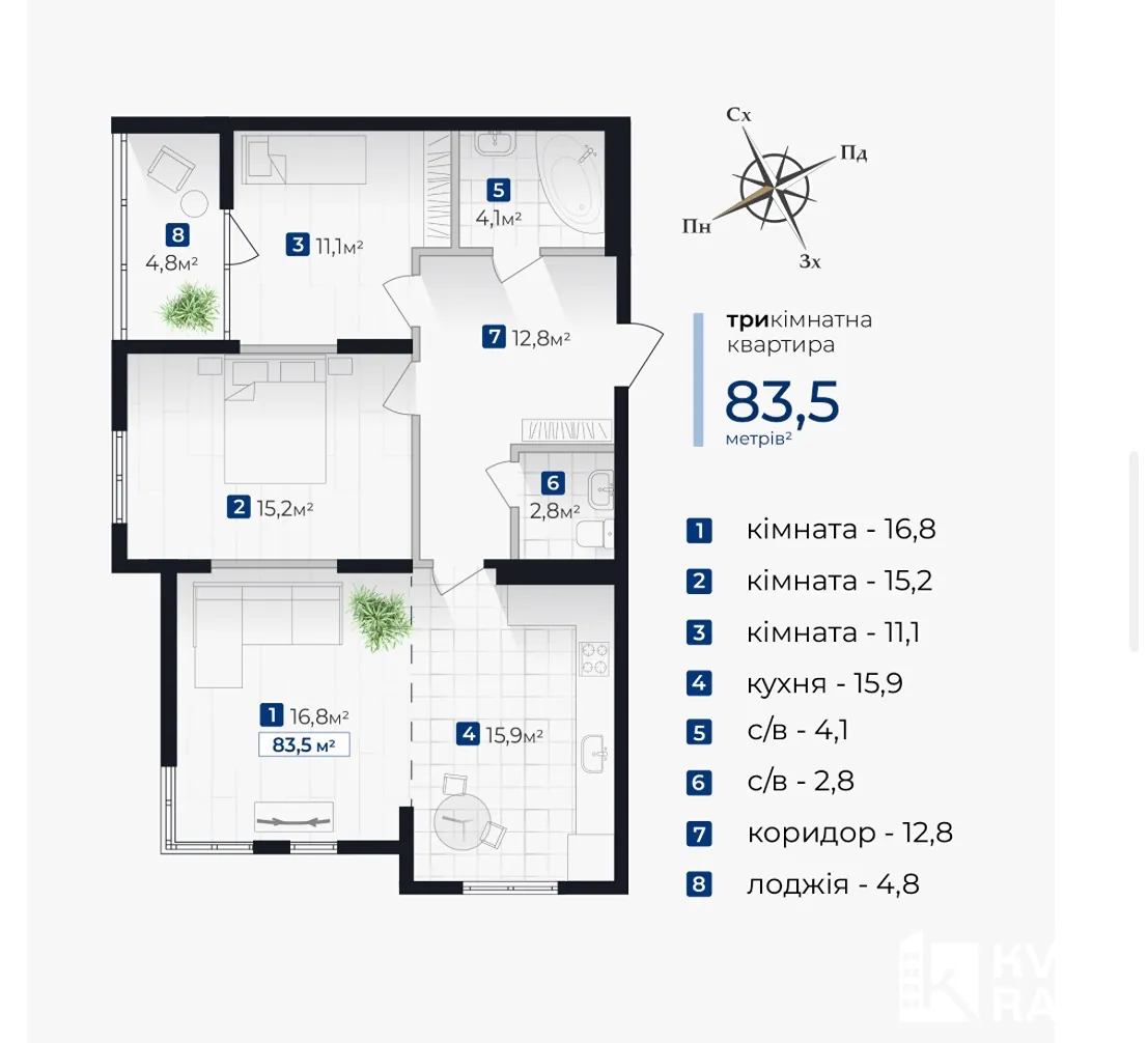 Продається трьохкімнатна квартира в сучасному житловому комплексі «Сенат», по вулиці Хоткевича, мікрорайон Братів, місто Івано-Франківськ.