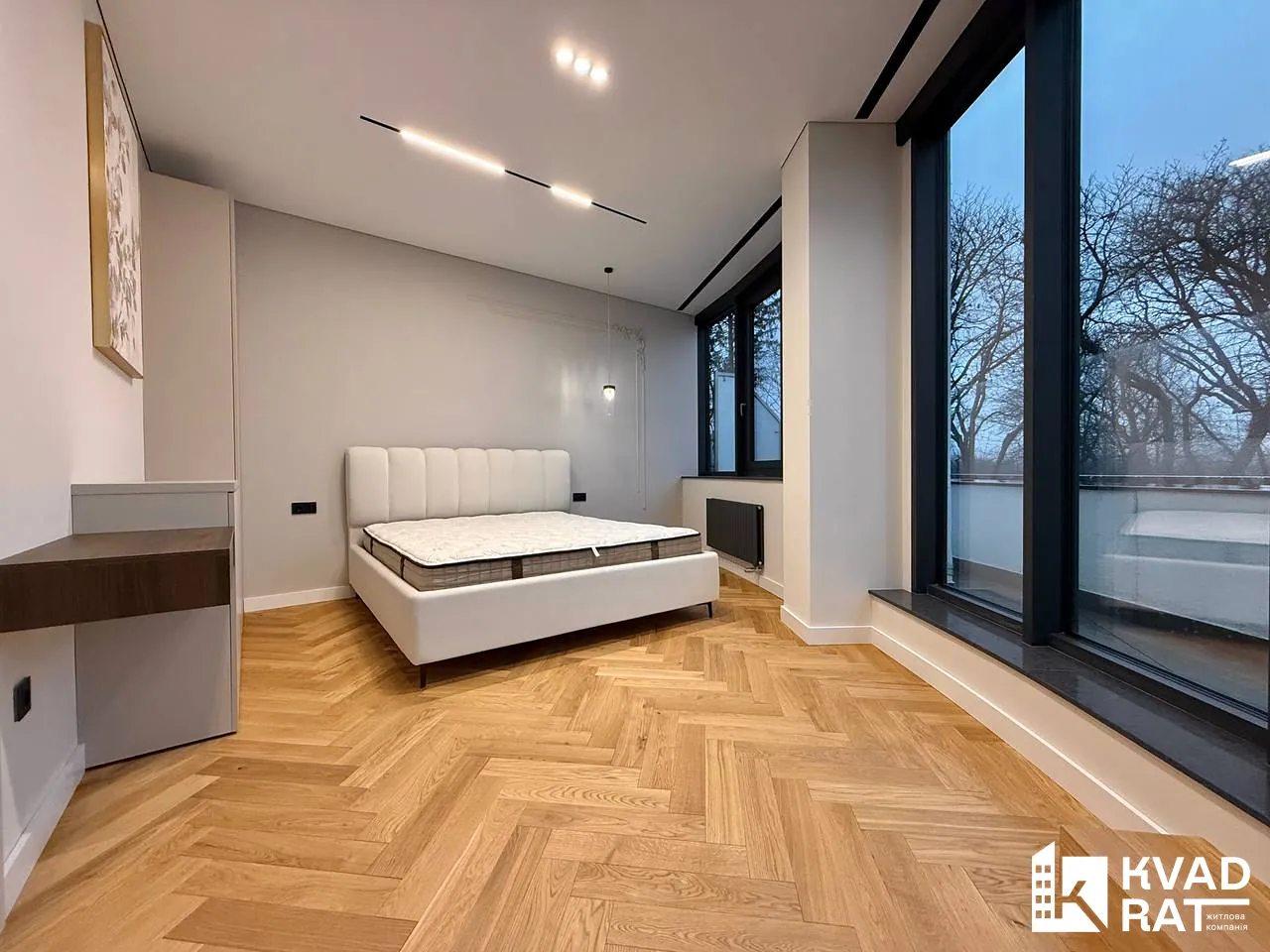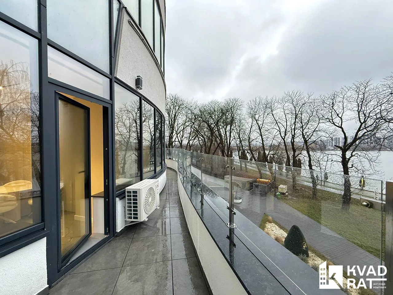 Квартира вражає фантастичним краєвидом на міське озеро, який відкривається з панорамних вікон та тераси. Унікальною перевагою є те, що вихід на терасу передбачений з кожної кімнати, включно з кухнею.