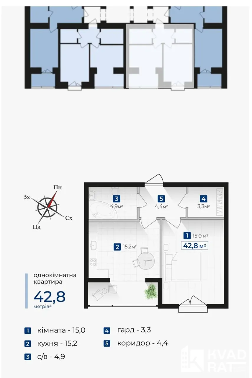 Якісне цегляне будівництво будинку, зручне планування квартири адже саме в цій квартирі все продумане до деталей, а саме, велика кухня квадратної форми, кімната з виходом на відкритий балкон, та гардеробна площею 3.3 м2.