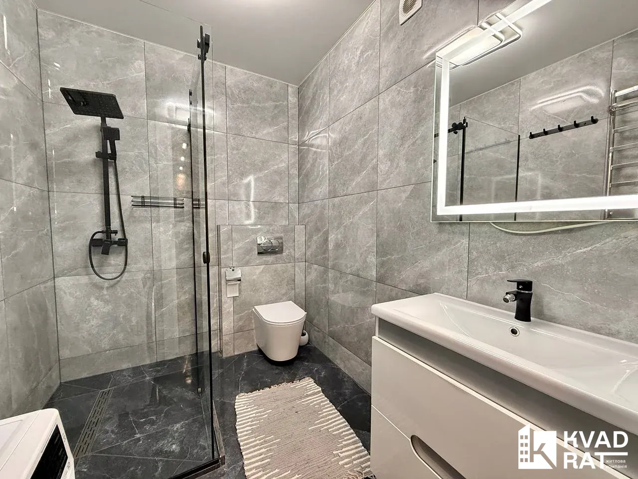 - Санвузол з ванною та тропічним душем, інсталяцією, умивальником.