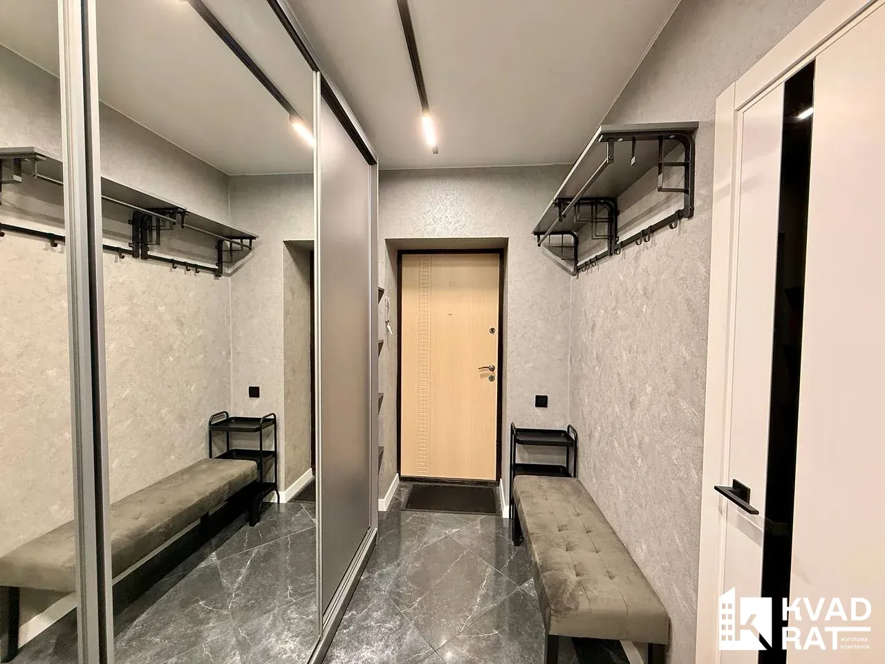 - Прихожа з дзеркалом у повний зріст, шафою для верхнього одягу