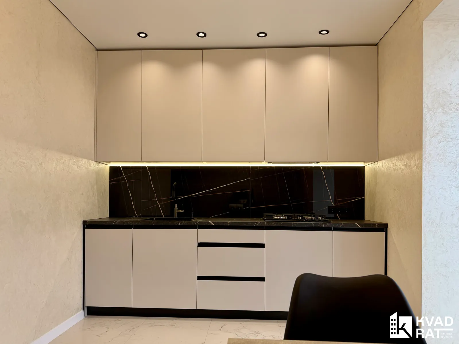 У квартирі виконано якісний ремонт. Встановлена сучасна кухня з обідньою зоною, є вбудована техніка: посудомийна машина, витяжка, варильна поверхня. Планування продумане та зручне для проживання.