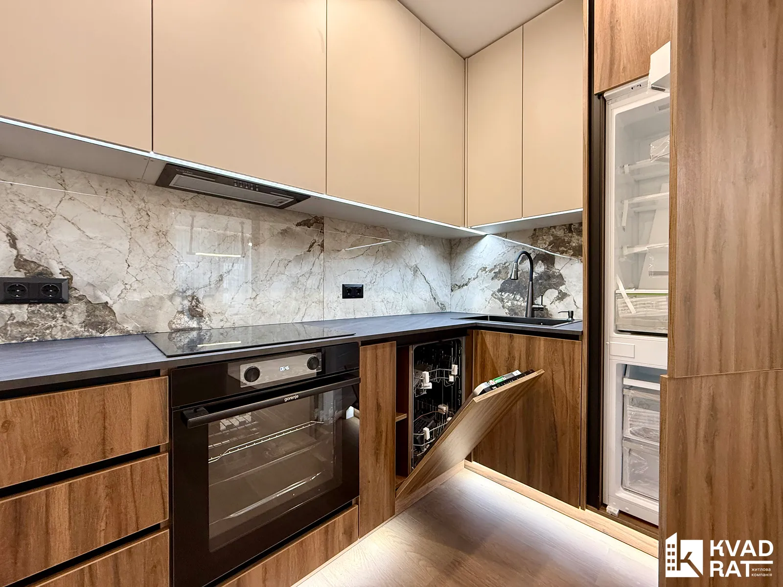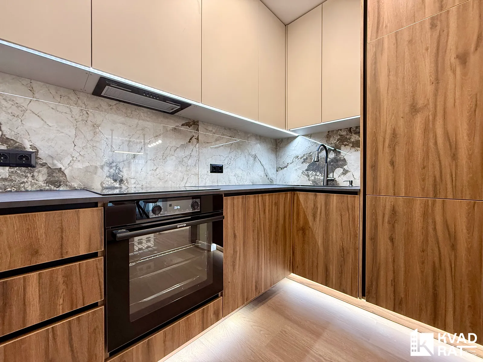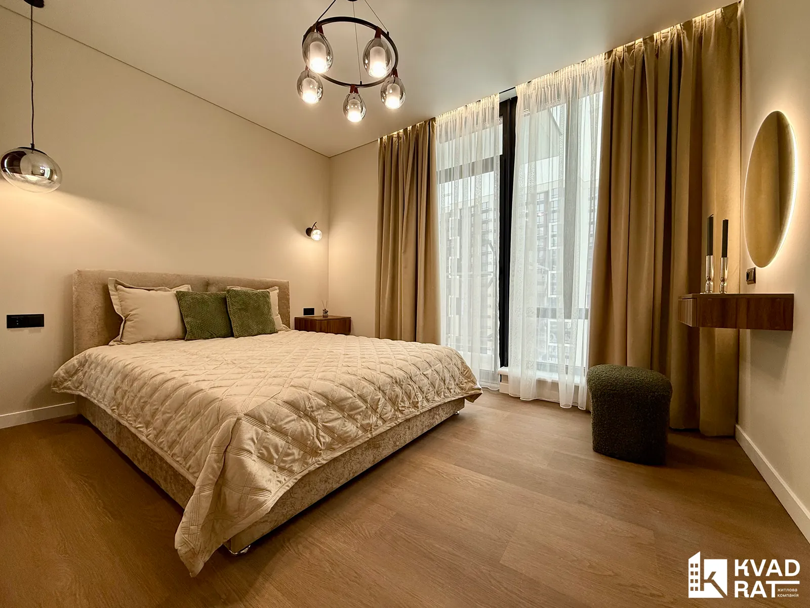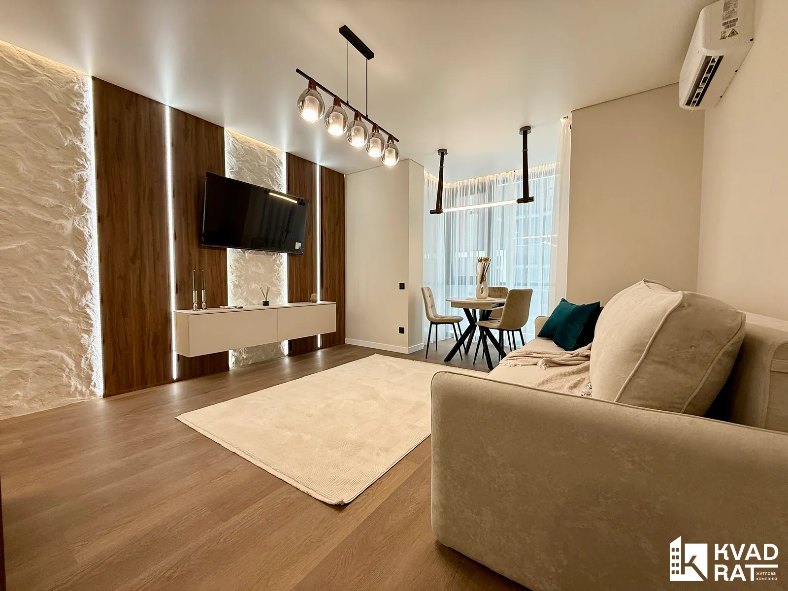 У квартирі виконано якісний та стильний ремонт з використанням дорогих матеріалів. Повністю укомплектована всіма необхідними меблями та побутовою технікою. Встановлений кондиціонер. На підлозі кварцвініл, під яким змонтована водяна тепла підлога.