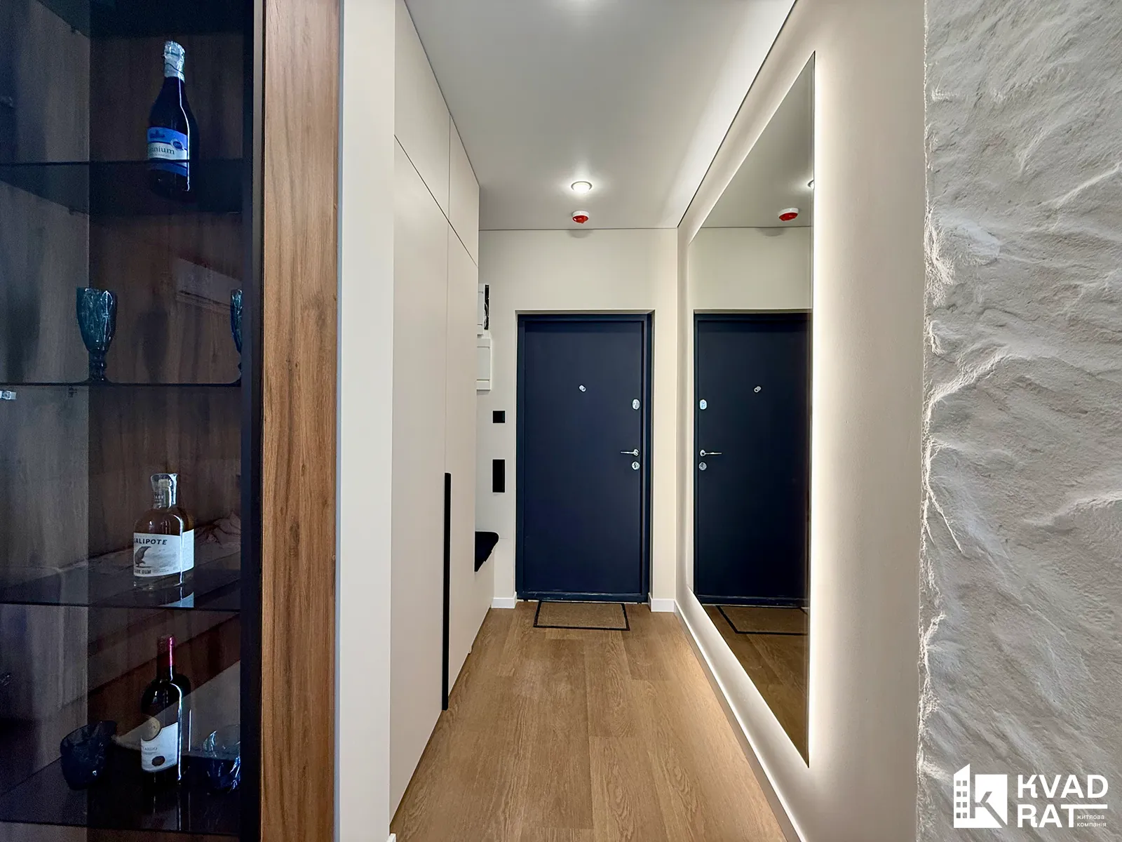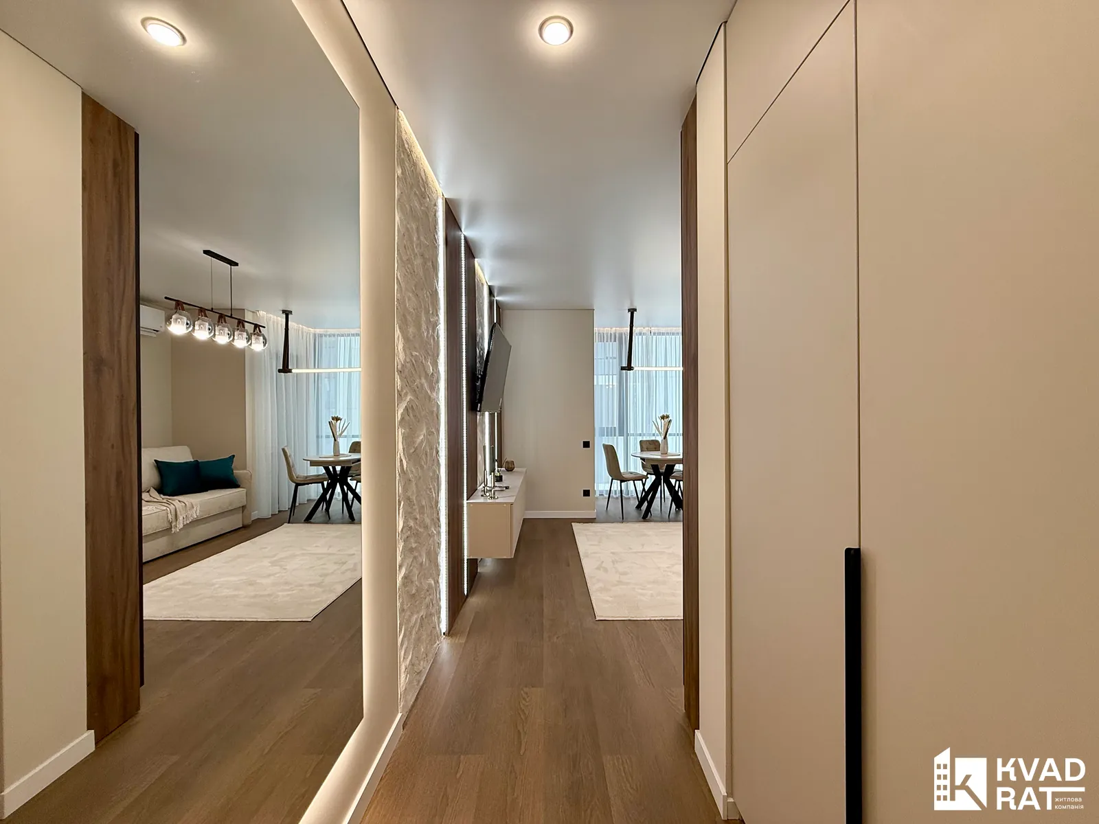 Продумана вхідна група з шафою для верхнього одягу та великим дзеркалом з підсвіткою. Також є лоджія з обідньою зоною та окрема кладова, ідеальна для зберігання непотрібних речей.