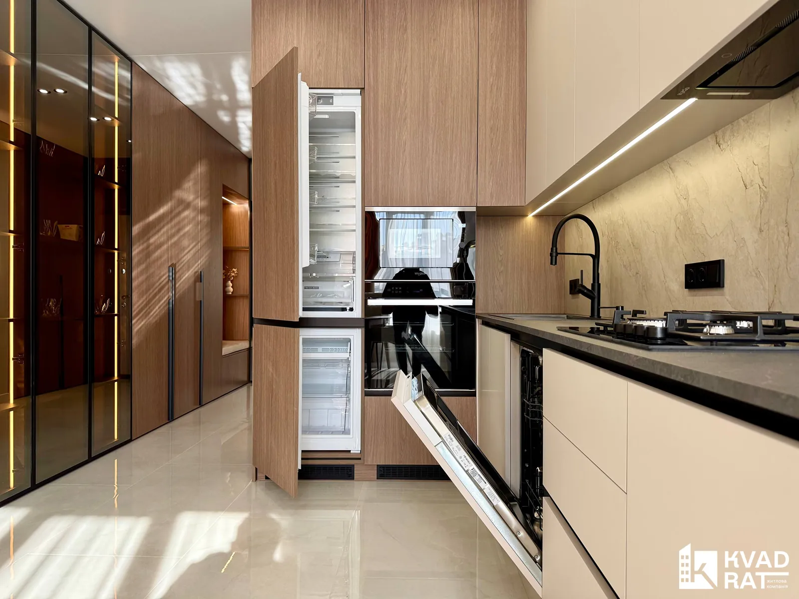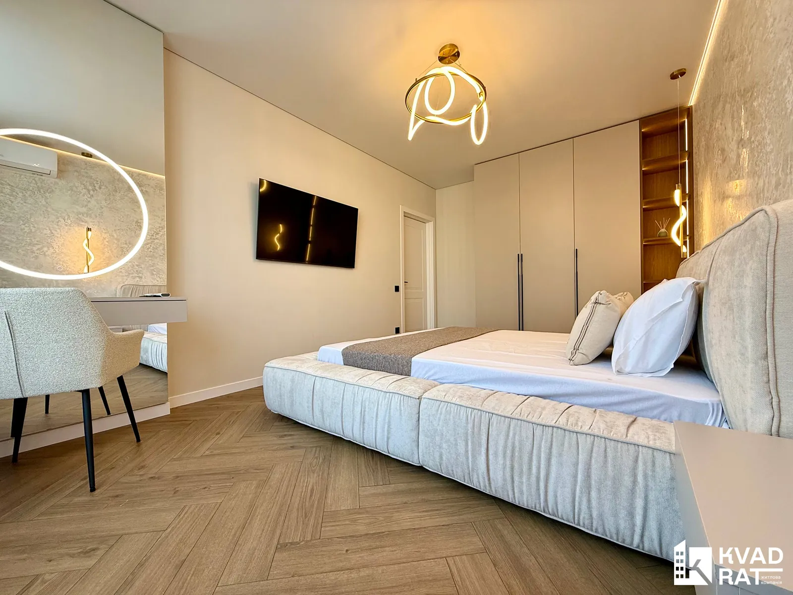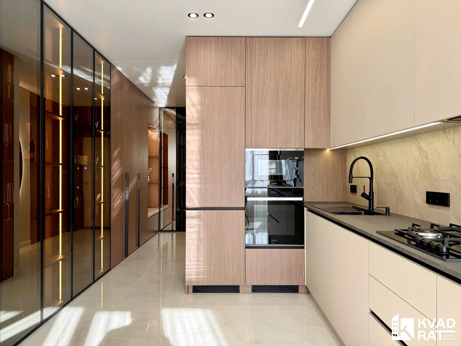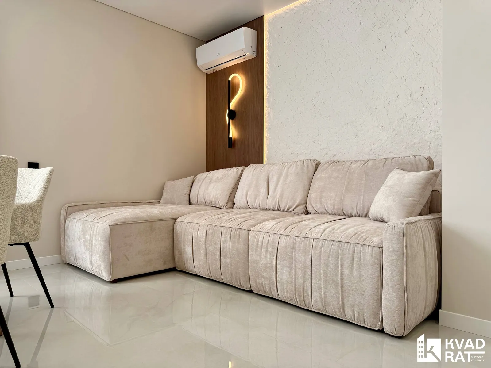 У квартирі виконаний якісний дорогий ремонт із використанням сучасних та практичних матеріалів. Кухня укомплектована меблями з якісною фурнітурою Blum та вмонтованою технікою Whirlpool. Для комфортного мікроклімату встановлені кондиціонери CooperHunter.