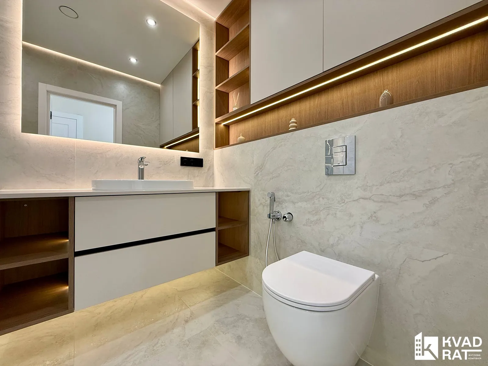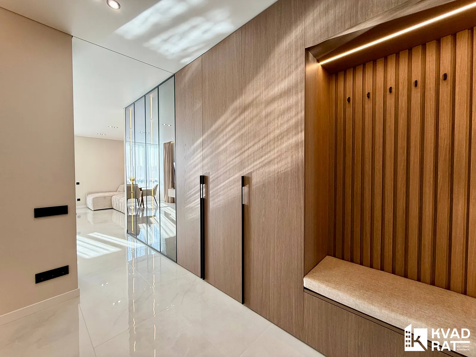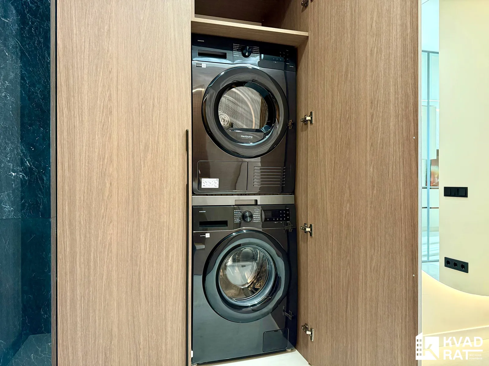 Також у квартирі є просторий санвузол, гарна вхідна зона з великою кількістю місця для зберігання речей та окрема технічна зона, де встановлені пральна та сушильна машини.