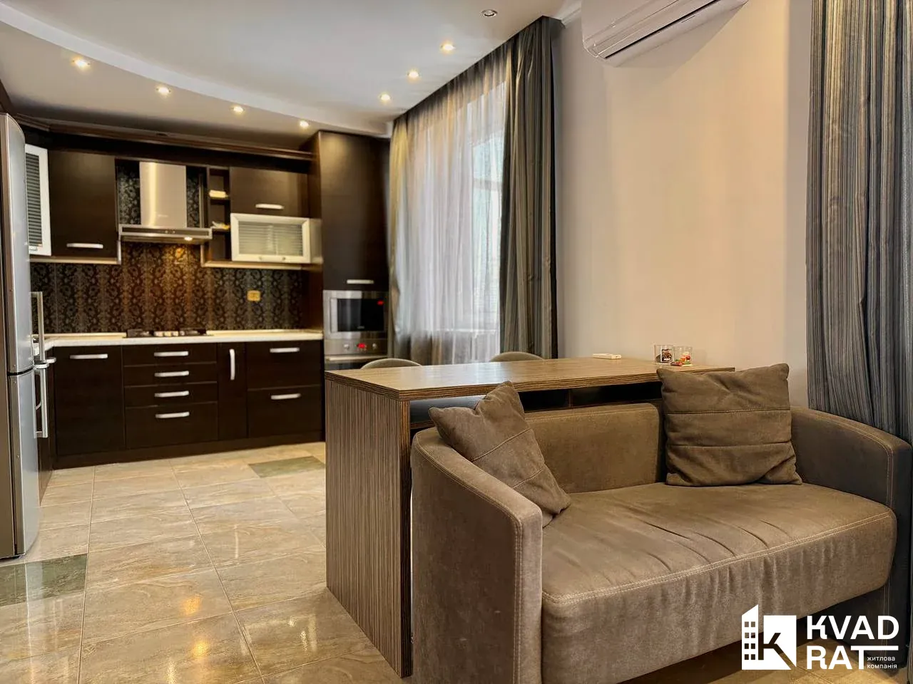 Пропонується в оренду простора та комфортна однокімнатна квартира в центральній частині міста. Розташована на 4 поверсі з 9, у будинку є ліфт. Планування: велика кухня-студія окрема спальня з двоспальним ліжком та місткою шафою-купе ванна кімната прихожа з великою шафою-купе для верхнього одягу просторий балкон Квартира повністю укомплектована всім необхідним для проживання: посудомийна машина, холодильник, пральна машина, духовка, мікрохвильова піч, газова варильна поверхня, два телевізори, кондиціонер, утюг, гладильна дошка, сушарка для білизни, посуд, подушки, ковдри, Wi-Fi. індивідуальне газове опалення тепла підлога в зонах з плиткою домофон Чудовий варіант для комфортного проживання в центрі міста. Телефонуйте для детальної інформації та перегляду.