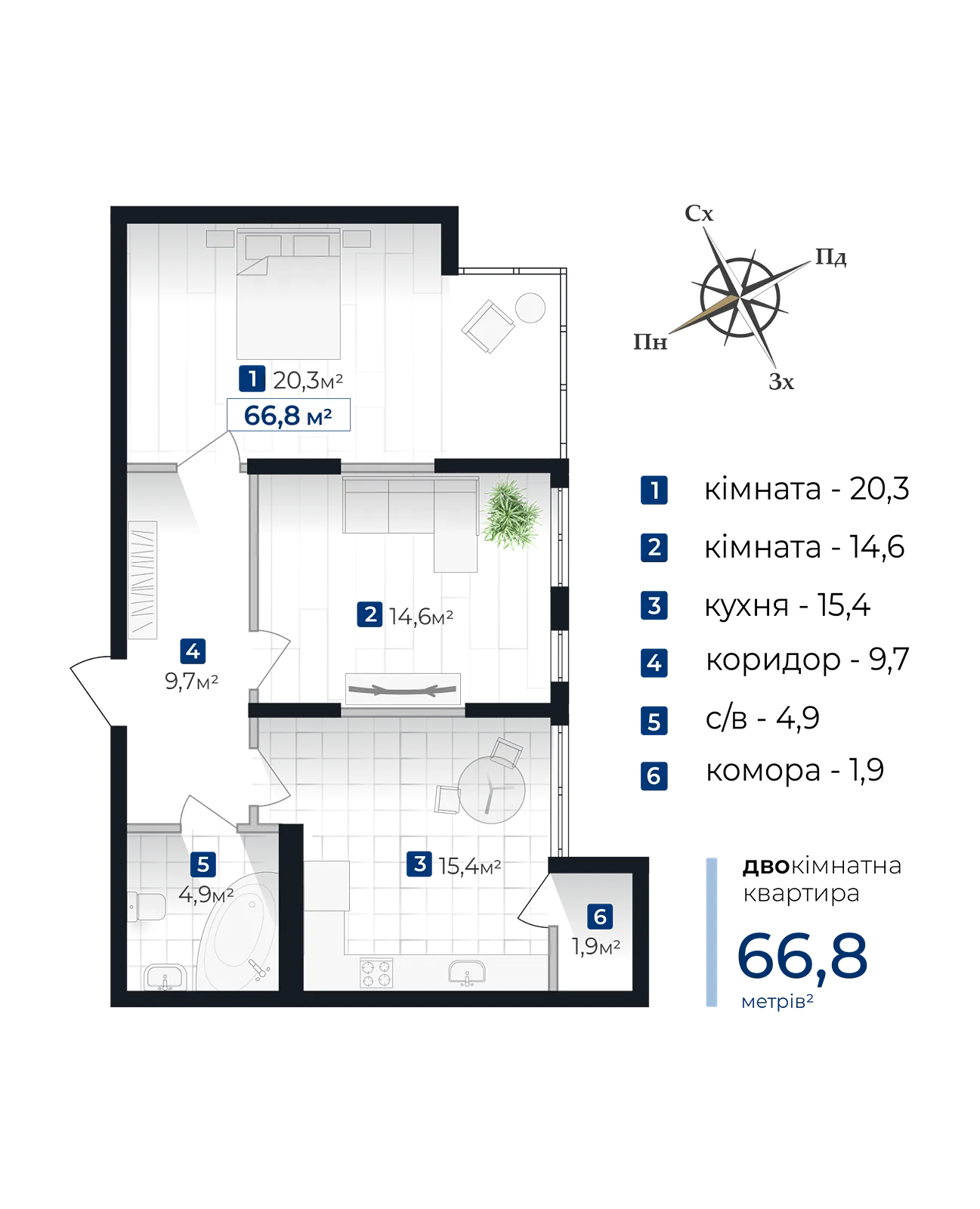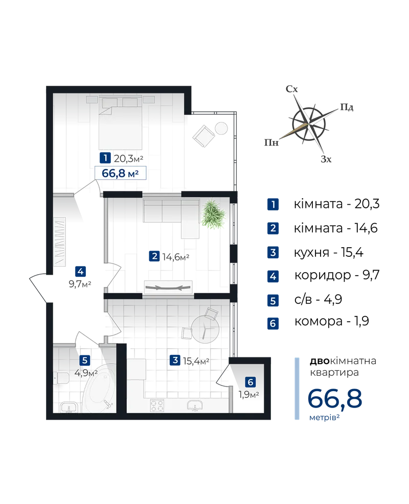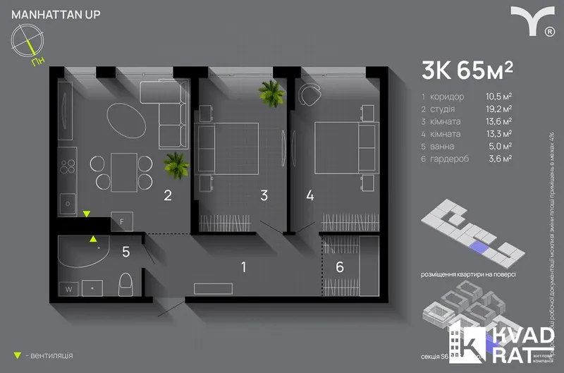 Senat Простора 2-кім квартира в готовому будинку! середній 6-й поверх