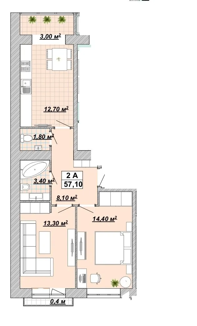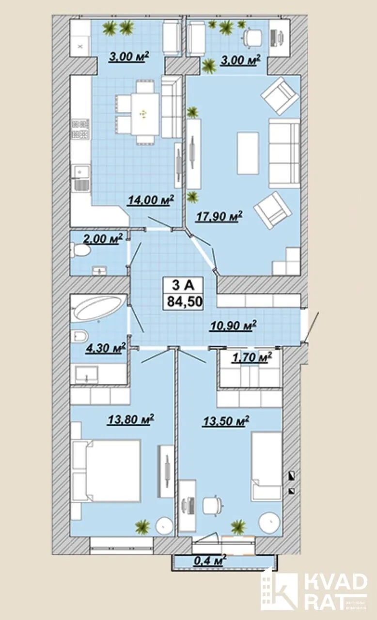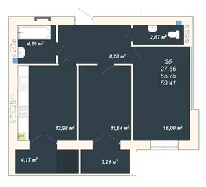 Трикімнатна квартира, 3-ій поверх. Княгинин