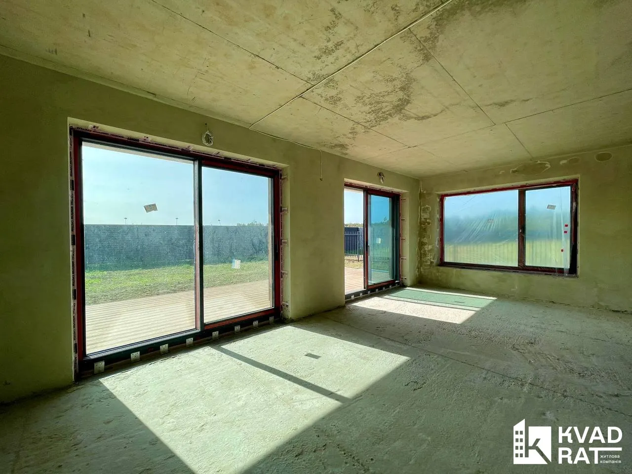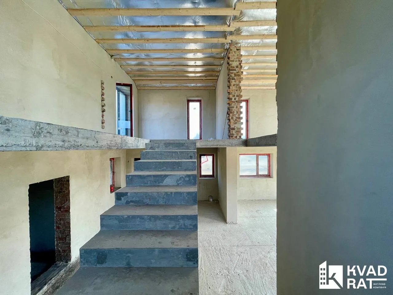 Мощення бруківкою з вхідної частини будинку та терасна дошка на терасах 1-го поверху. Земельна ділянка, готова під облаштування газону.