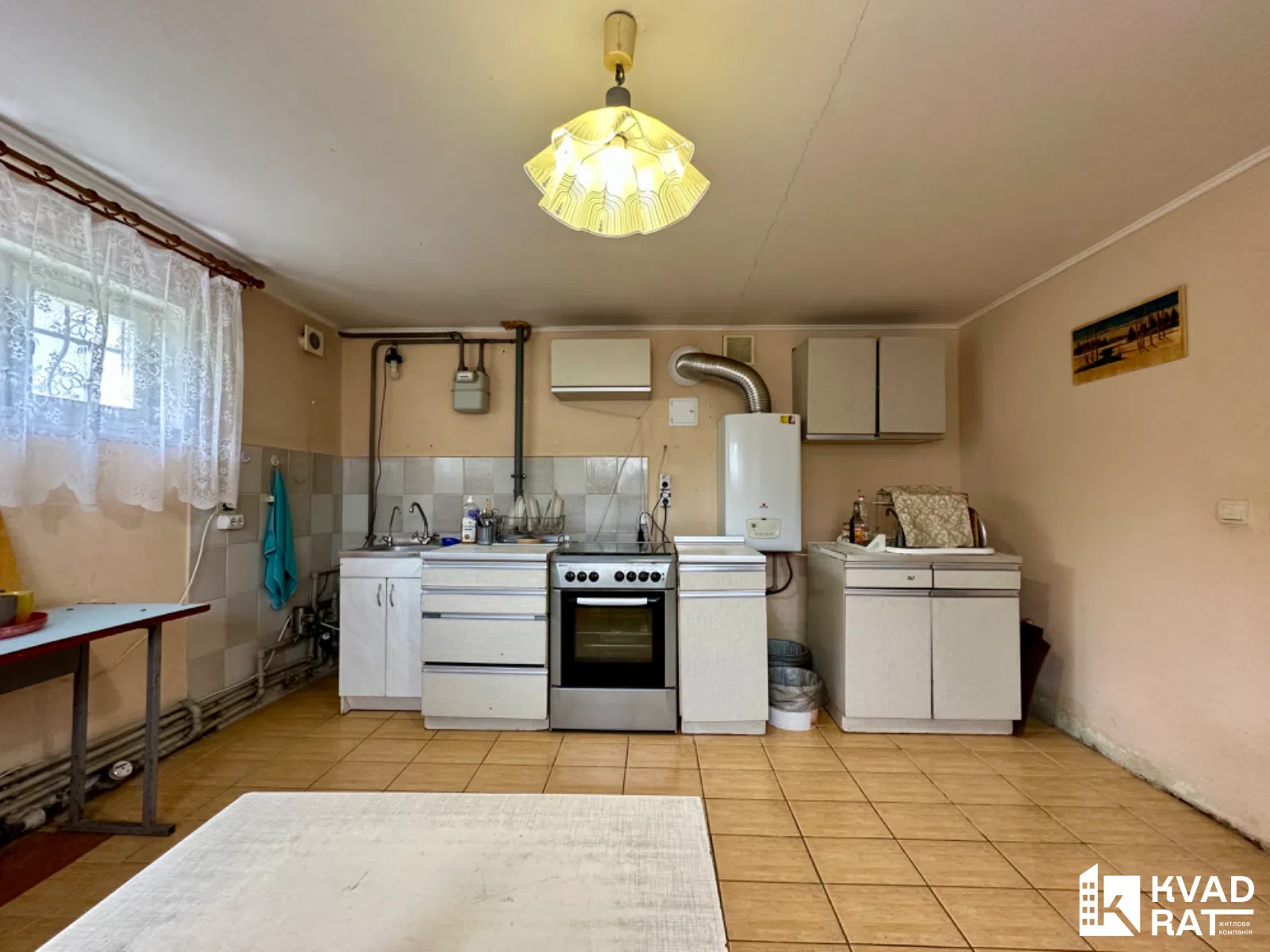Функціональна частина з двома кімнатами, кухнею, санвузлом, коморою та гаражем. Підлога керамічна плитка. Є внутрішній вихід на перший поверх.
