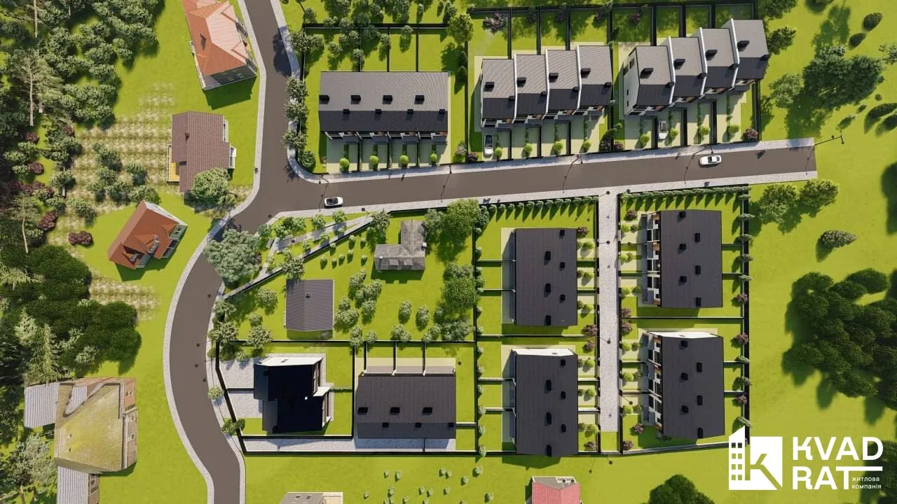 Котеджне мічтечко включає у себе таунхауси внутрішні та таунхауси крайні з бічною земельною ділянкою з закритою територією.