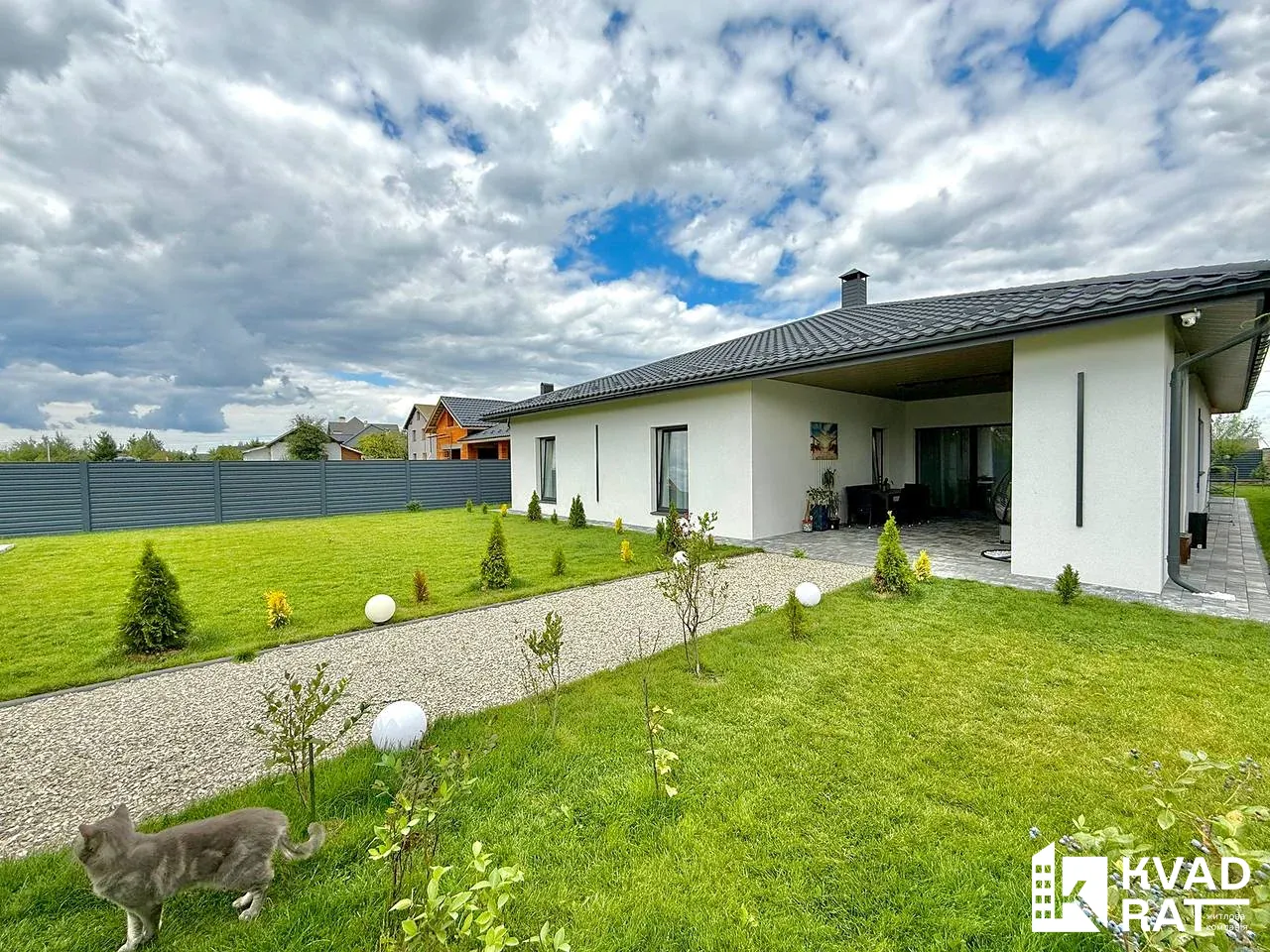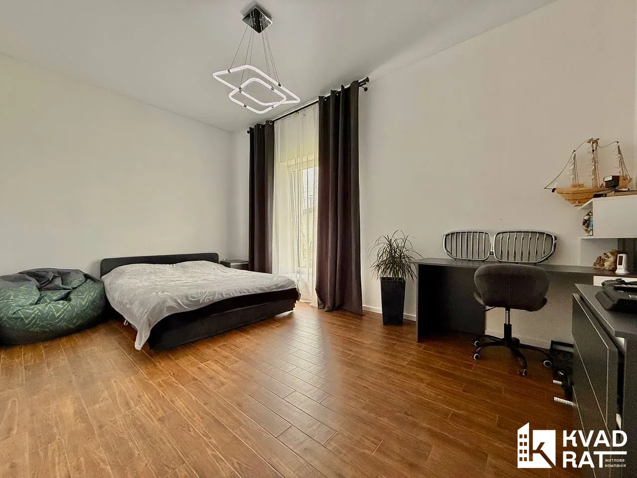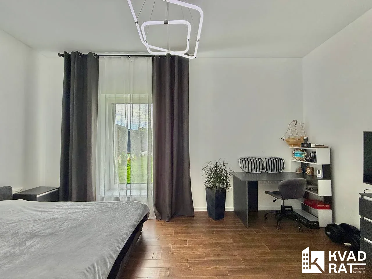 простора кухня-вітальня 61м2 з виходом на задню терасу, 4 спальні кімнати, 3 санвузли, гардеробна, комірка при кухні, паливна, пральня, просторий гараж на 2 автомобілі. Також є доступ до горища.